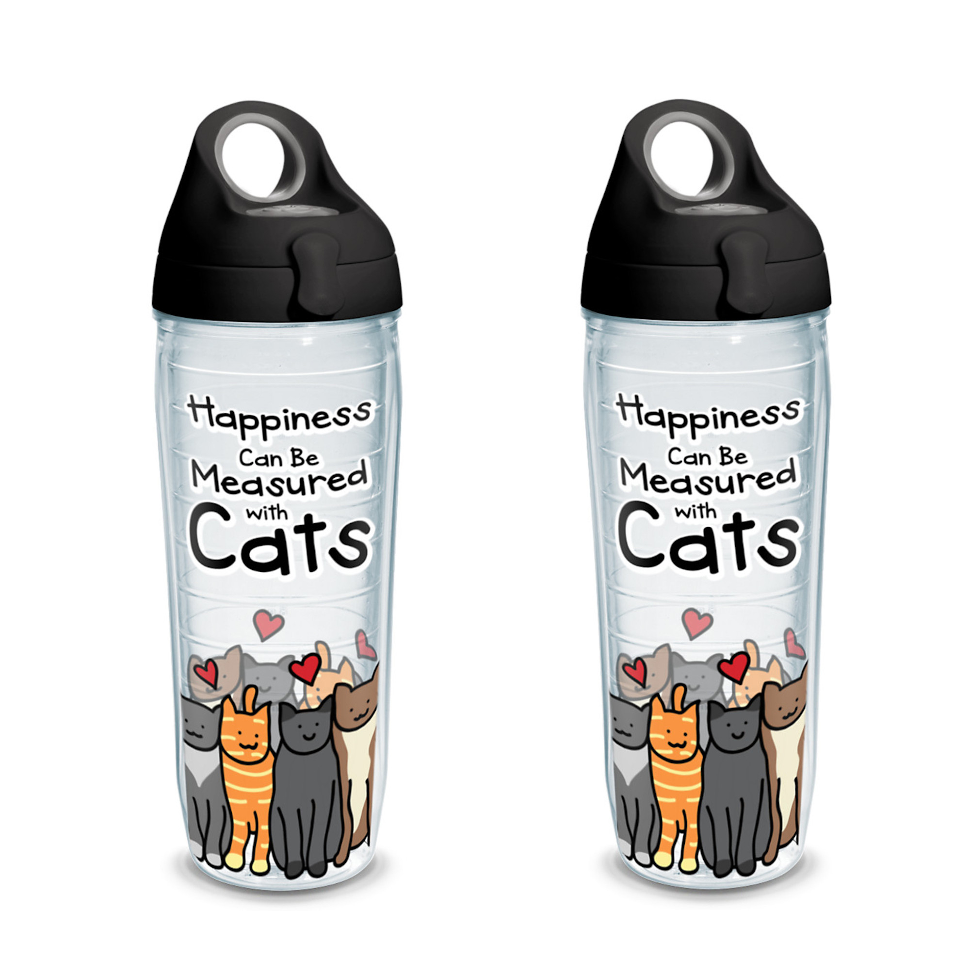 Project Paws Happiness Can Be Measured With Cats 24 oz Water Bottle with lid, 2 Pack