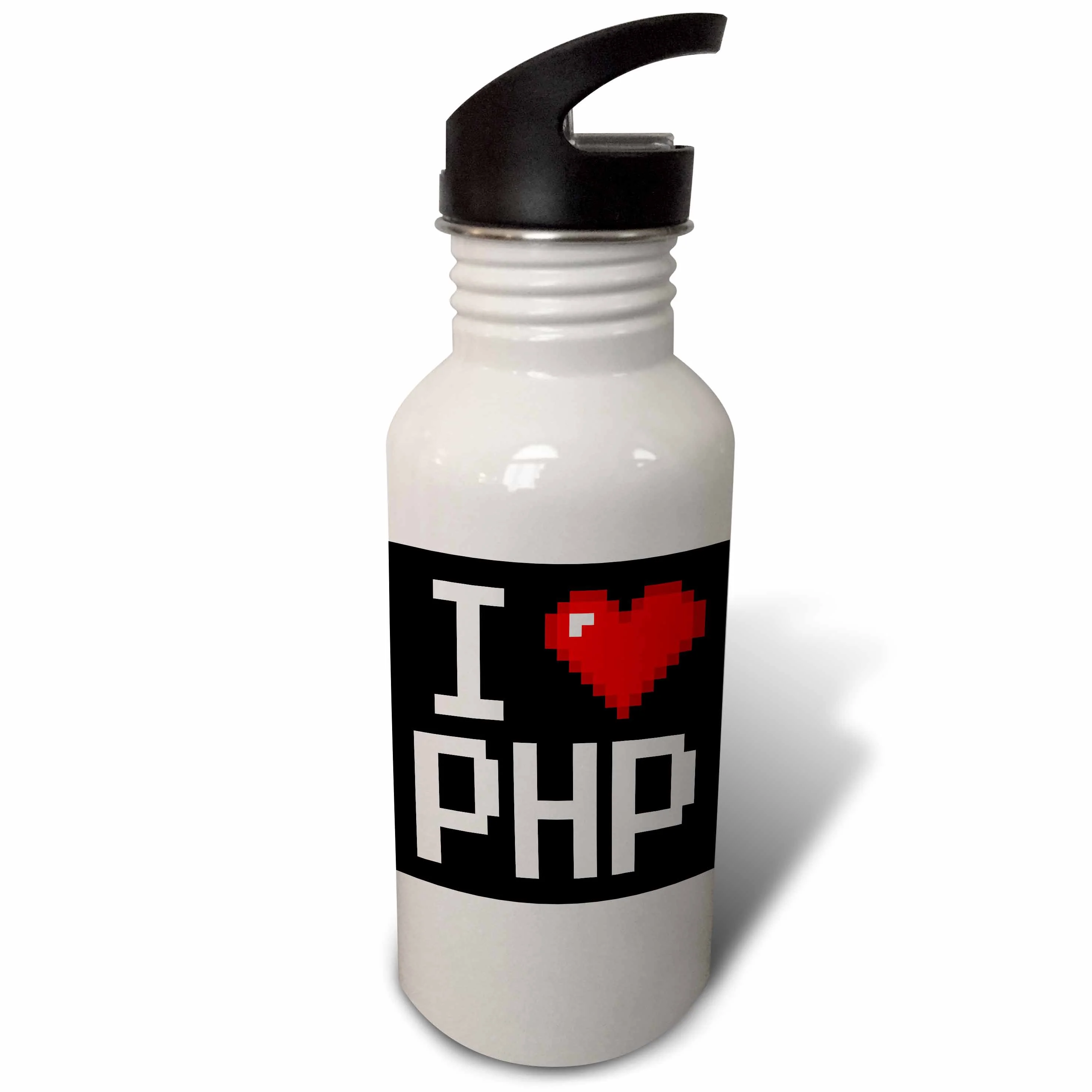 Geeky Old School Pixelated Pixels 8-Bit I Heart I Love PHP 21 oz Sports Water Bottle wb-118923-1