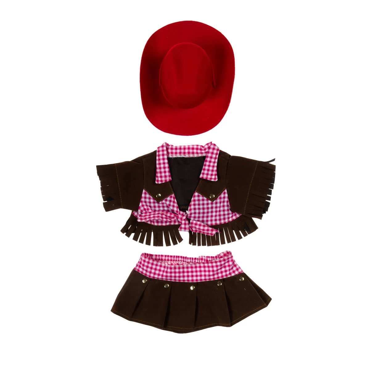 New Cowgirl Pink And Brown Outfit With Red Hat Fits Most 14"-18"