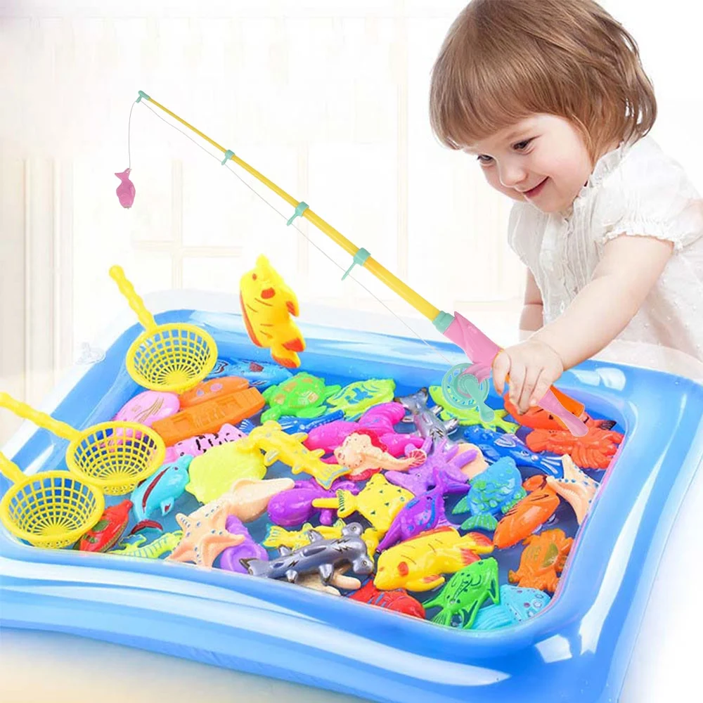 Magnetic Fishing Toy Set With 1 Fishing Rod and 6 Cute Fishes for Children Fun Time Random Color