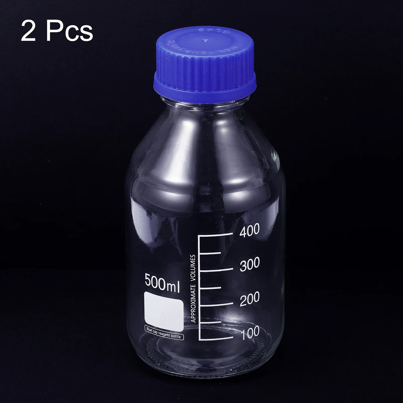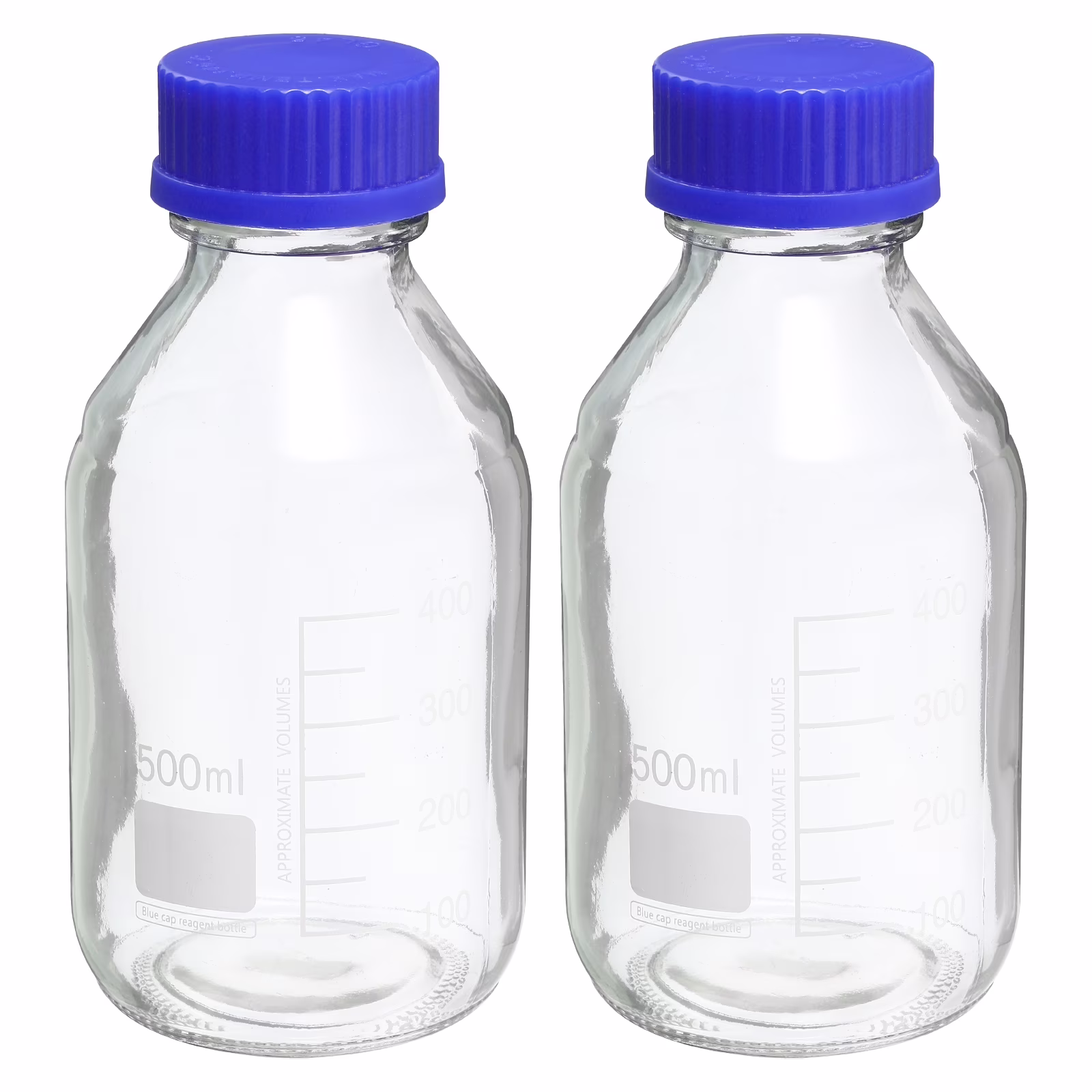Uxcell 500mL Clear Reagent Media Graduated Glass Storage Bottle Blue Cap 2 Pack