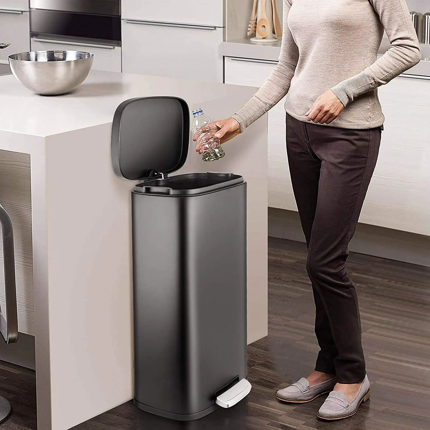Caynel Floor Standing Wipe Dispenser with Built-in Trash Receptacle, Stainless Steel, Silver
