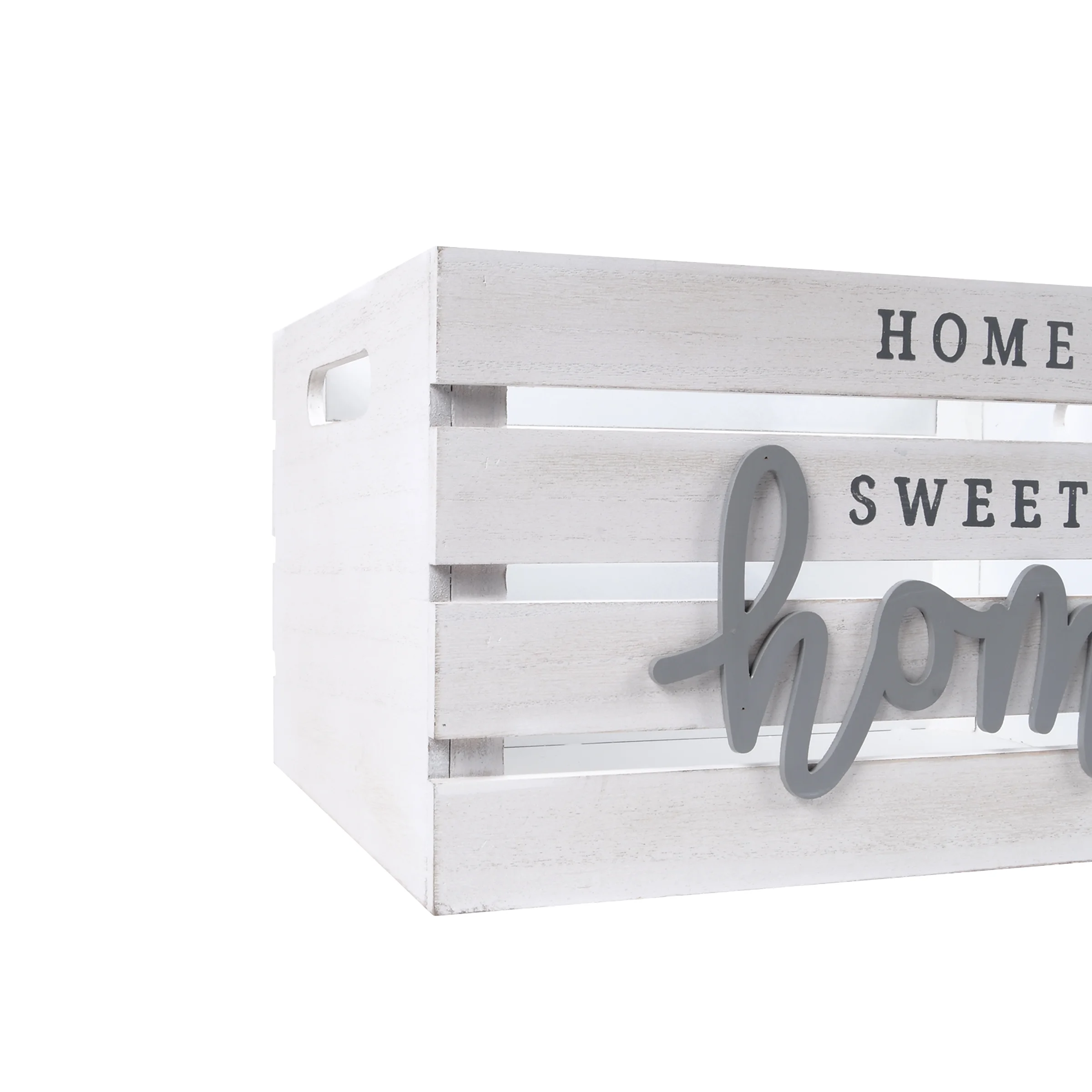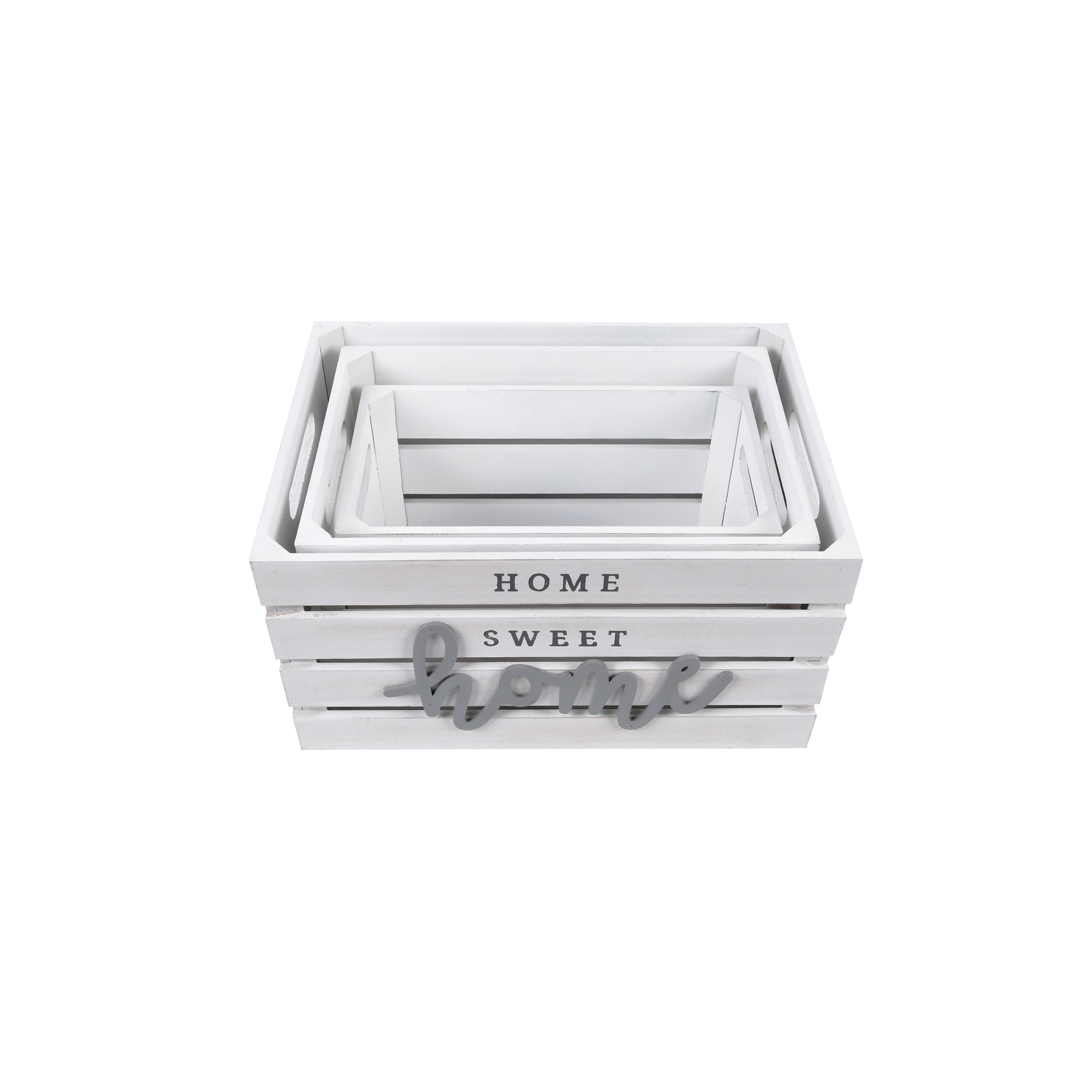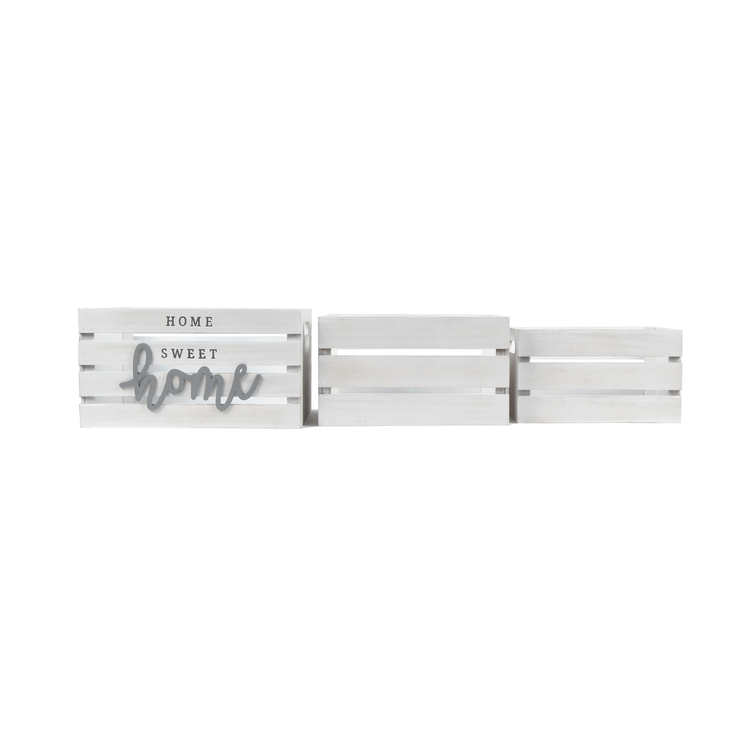 Prinz Home Sweet Home 13.4'W x 9.5'H Rustic Whitewashed Nesting Storage Crates, Set of Three