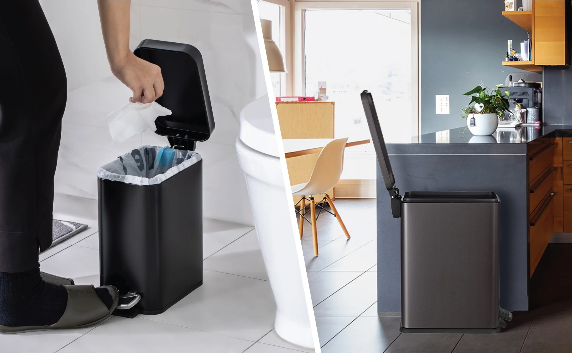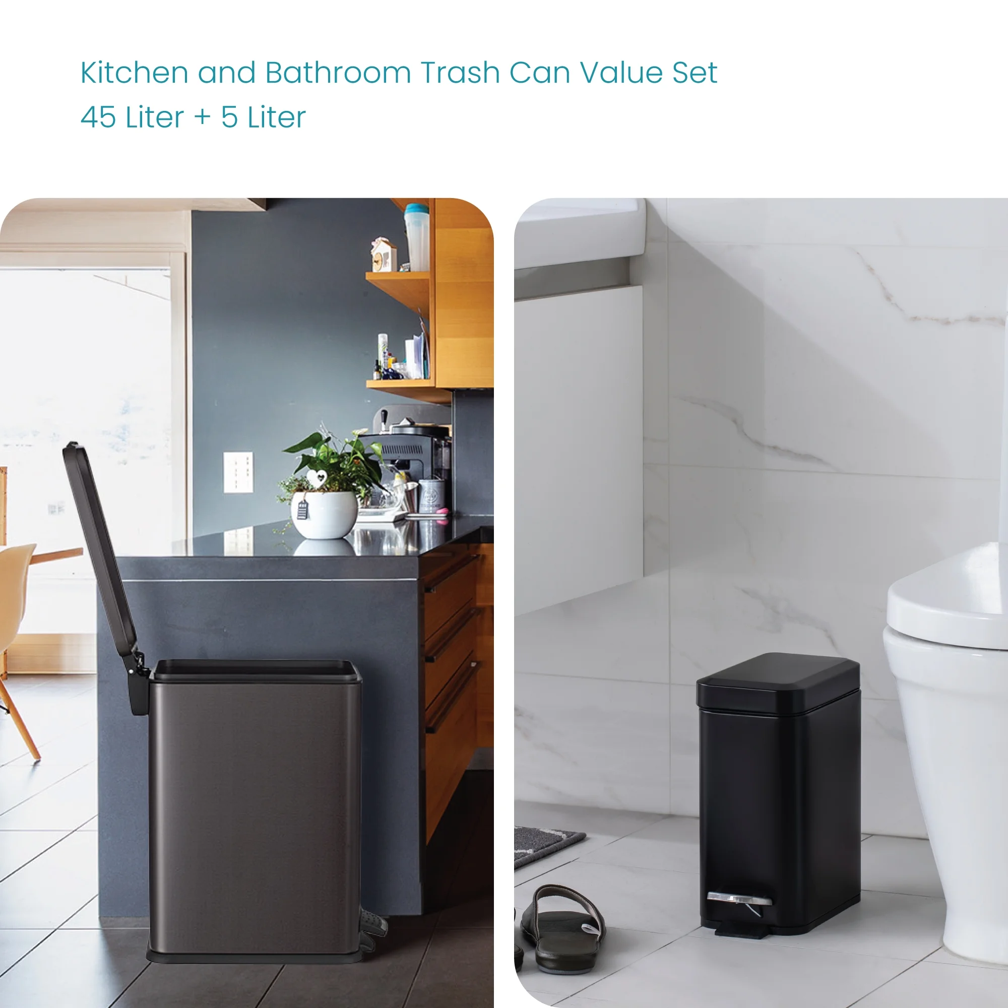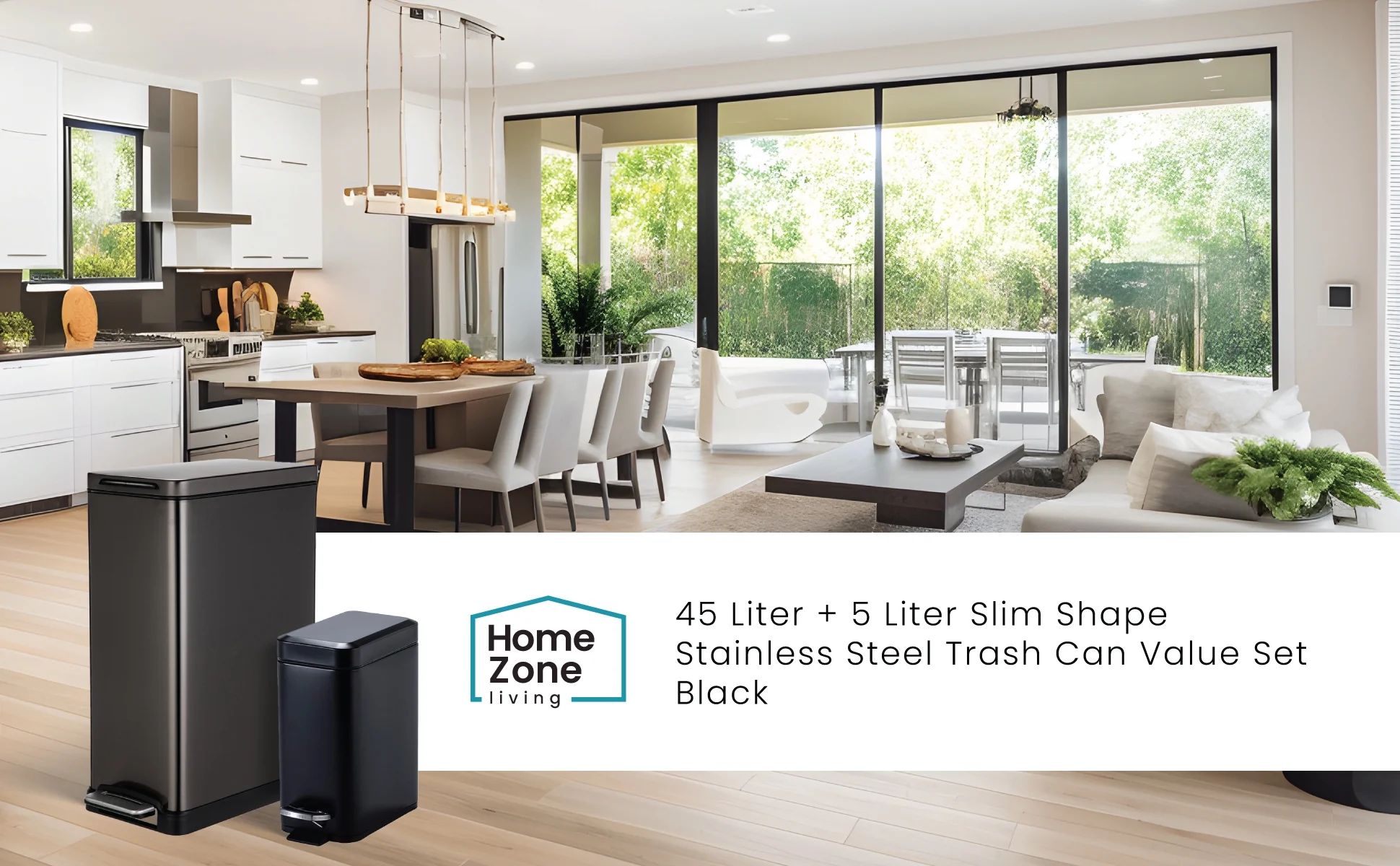 Home Zone Living 12 gal, 1.3 gal Kitchen Trash Can Combo, Slim Design in Stainless Steel, Black