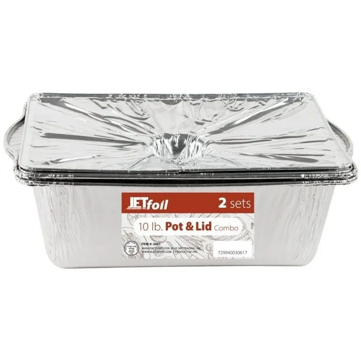 Jet Foil Disposable Aluminum 10 LB Large Rectangle Pots With Lids Combo set. : 12 CT