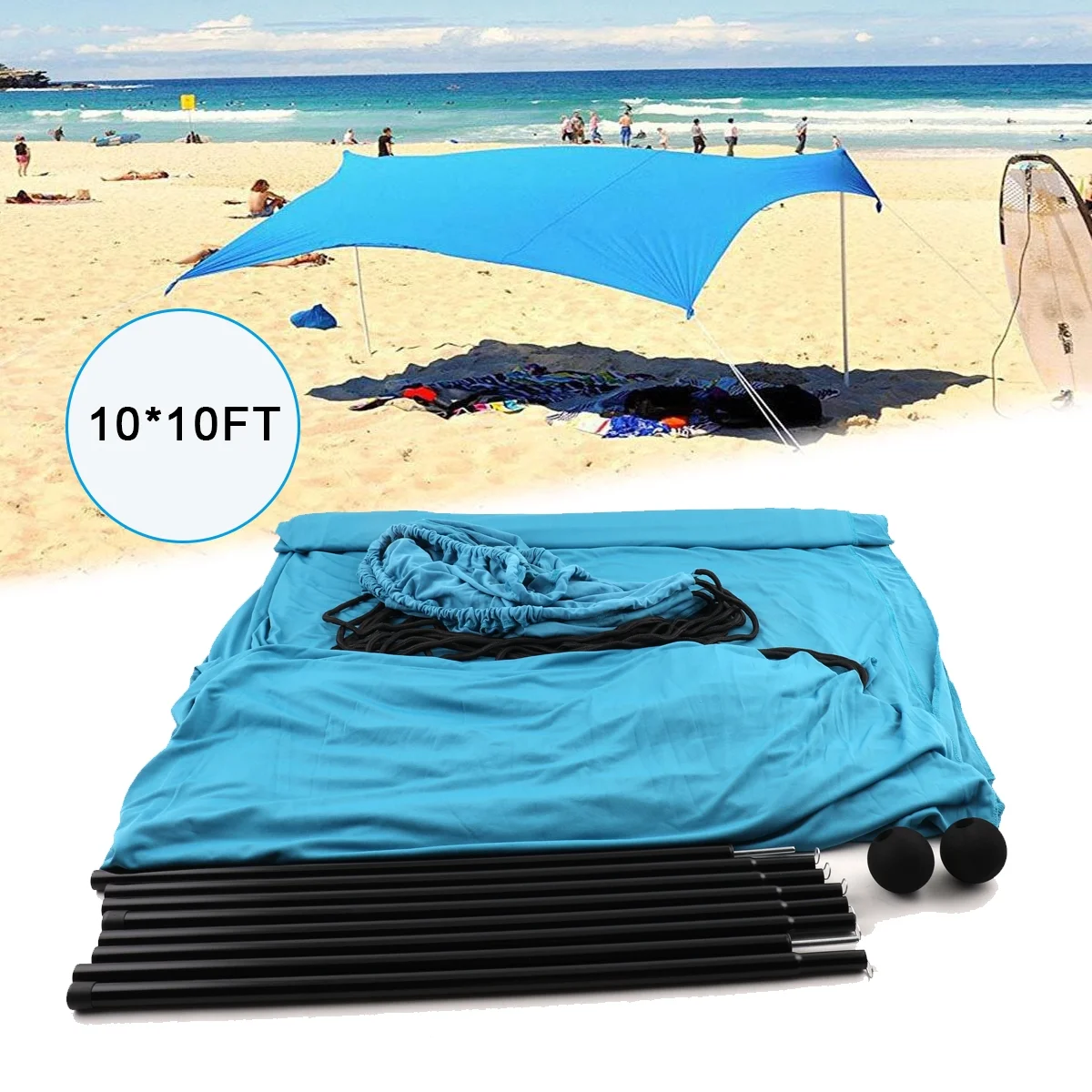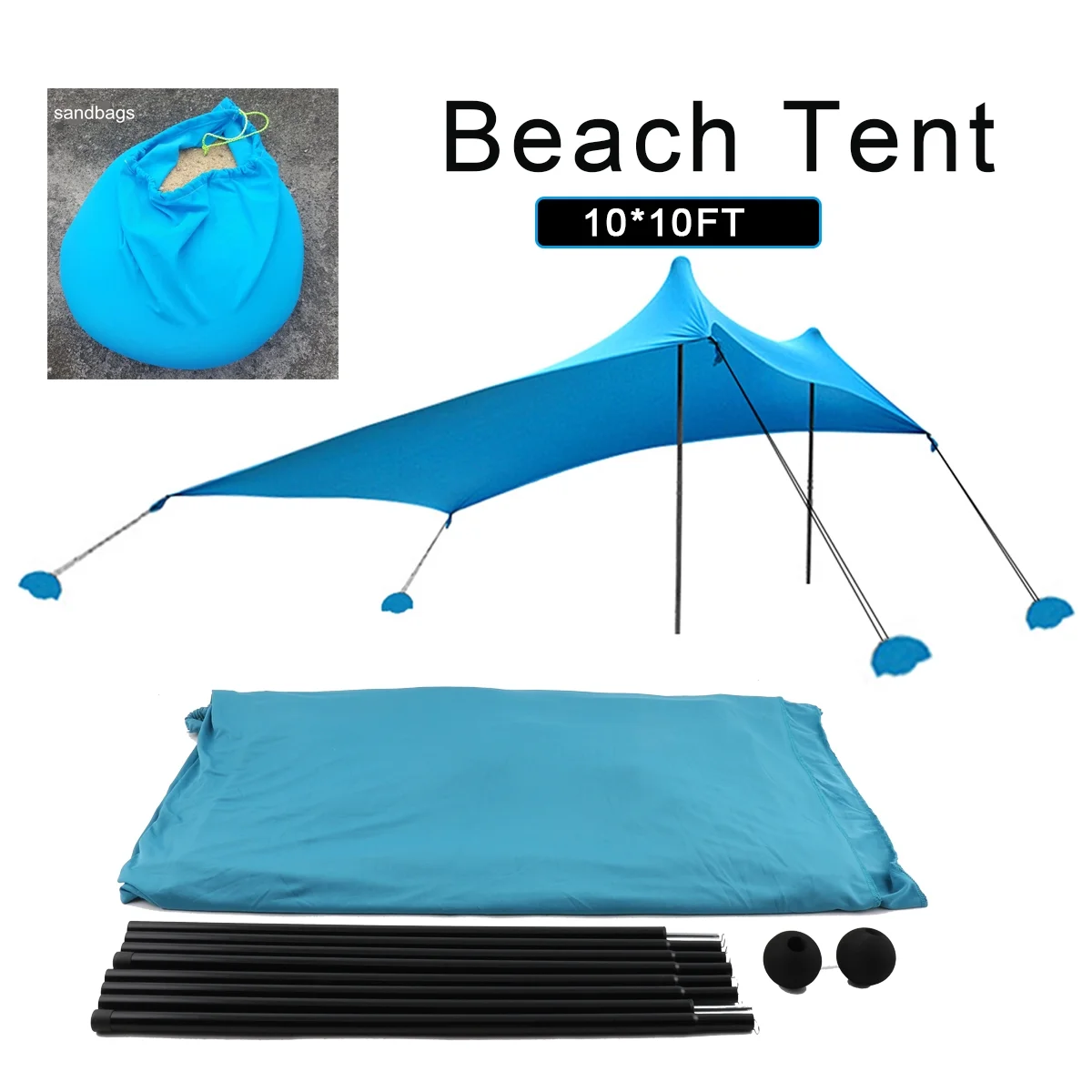 Beach Tent Sun Shelter Portable Sun Shade Canopy Awning with Sandbag 10x10ft