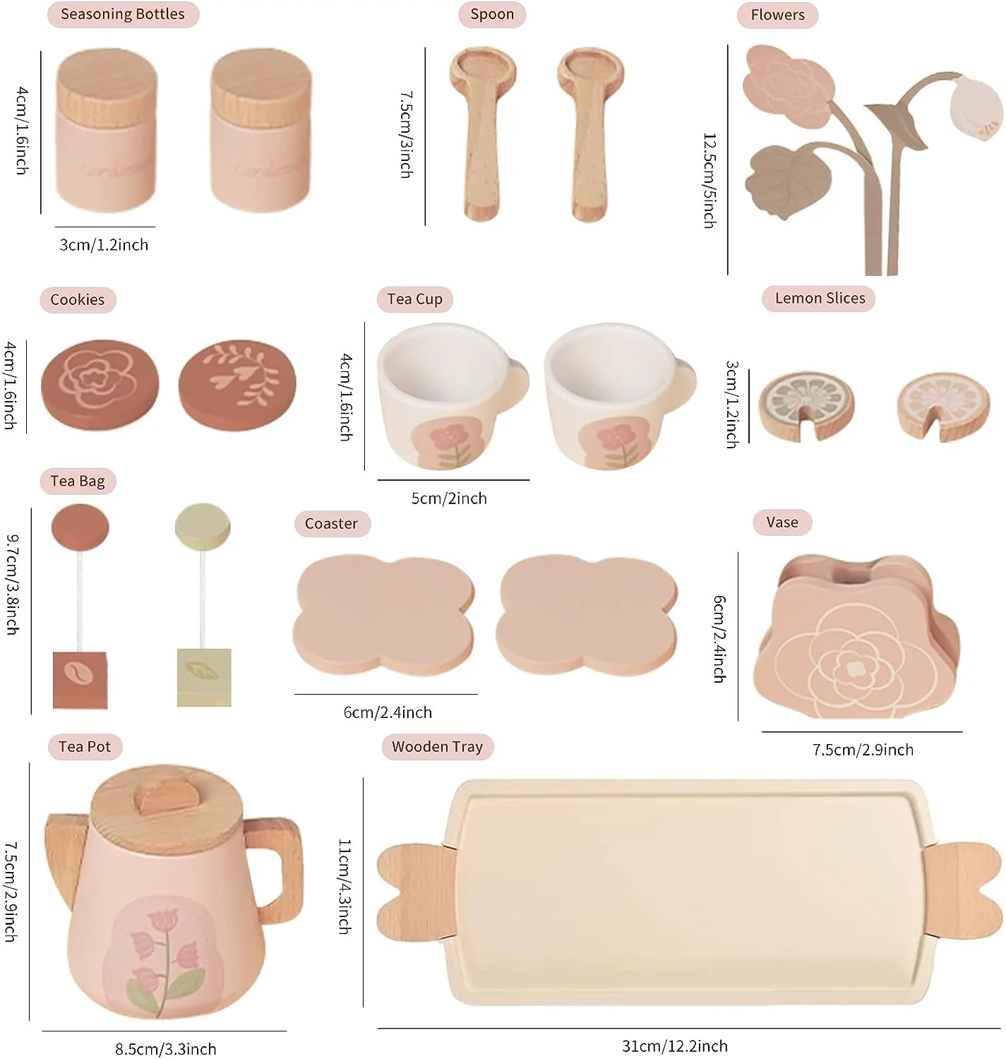 Pretend Play Set for Toddler Girl, Afternoon Tea and Coffee Set with Abundant Accessories, Great Gift Toy for Kids 2 to 5 Years Old Birthday