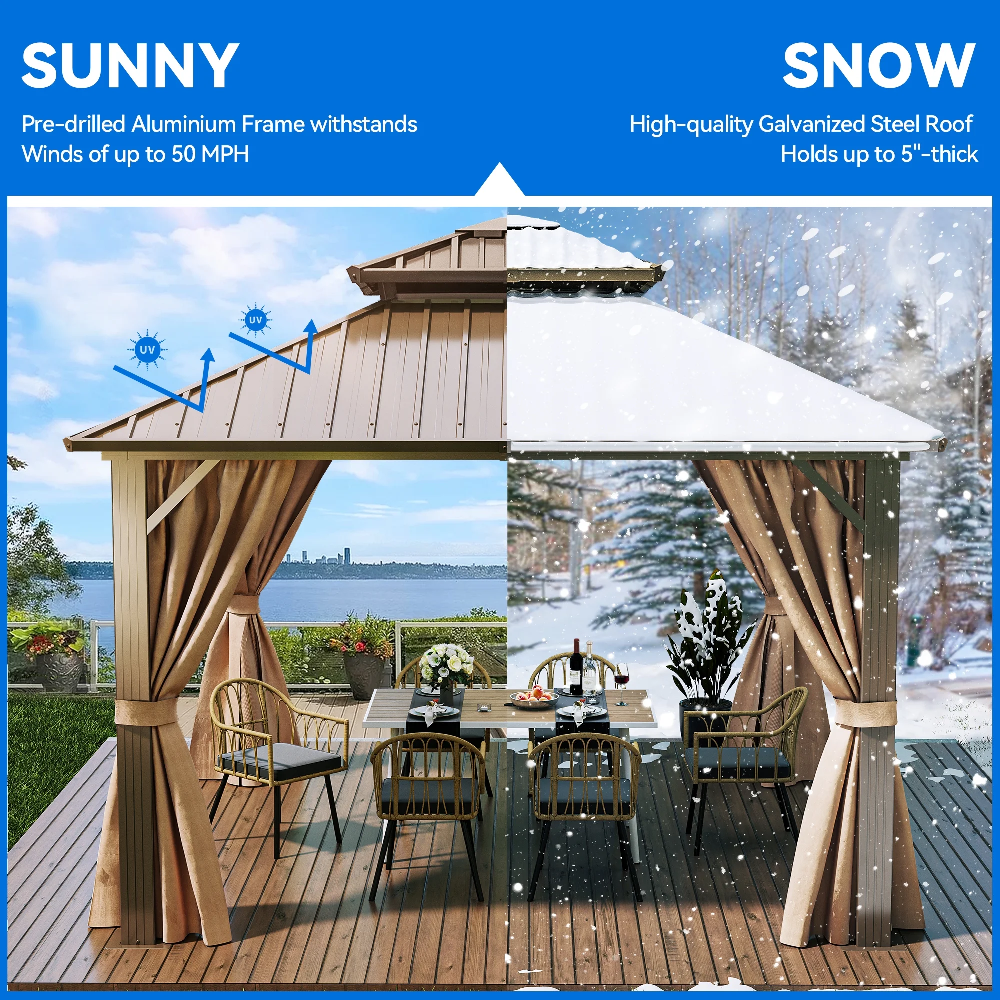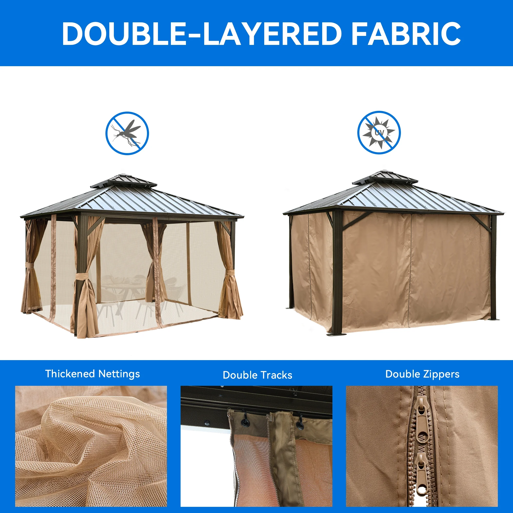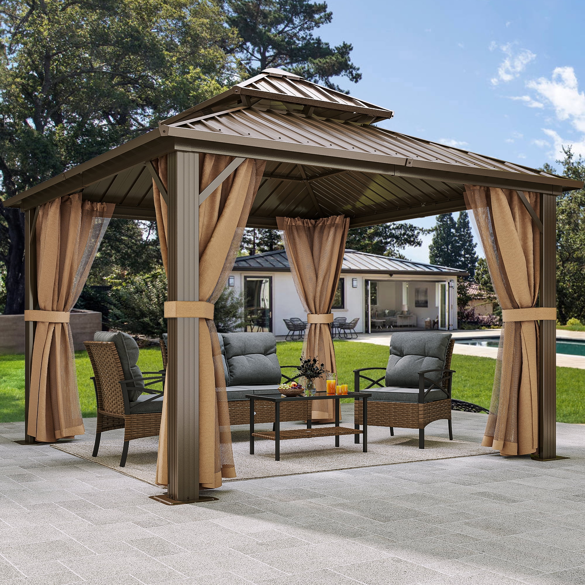 Dcenta 10'x10' Gazebo Replacement Canopy Top Cover with 2-Tier & 8 gGrommet 9.14 oz/yd² Green