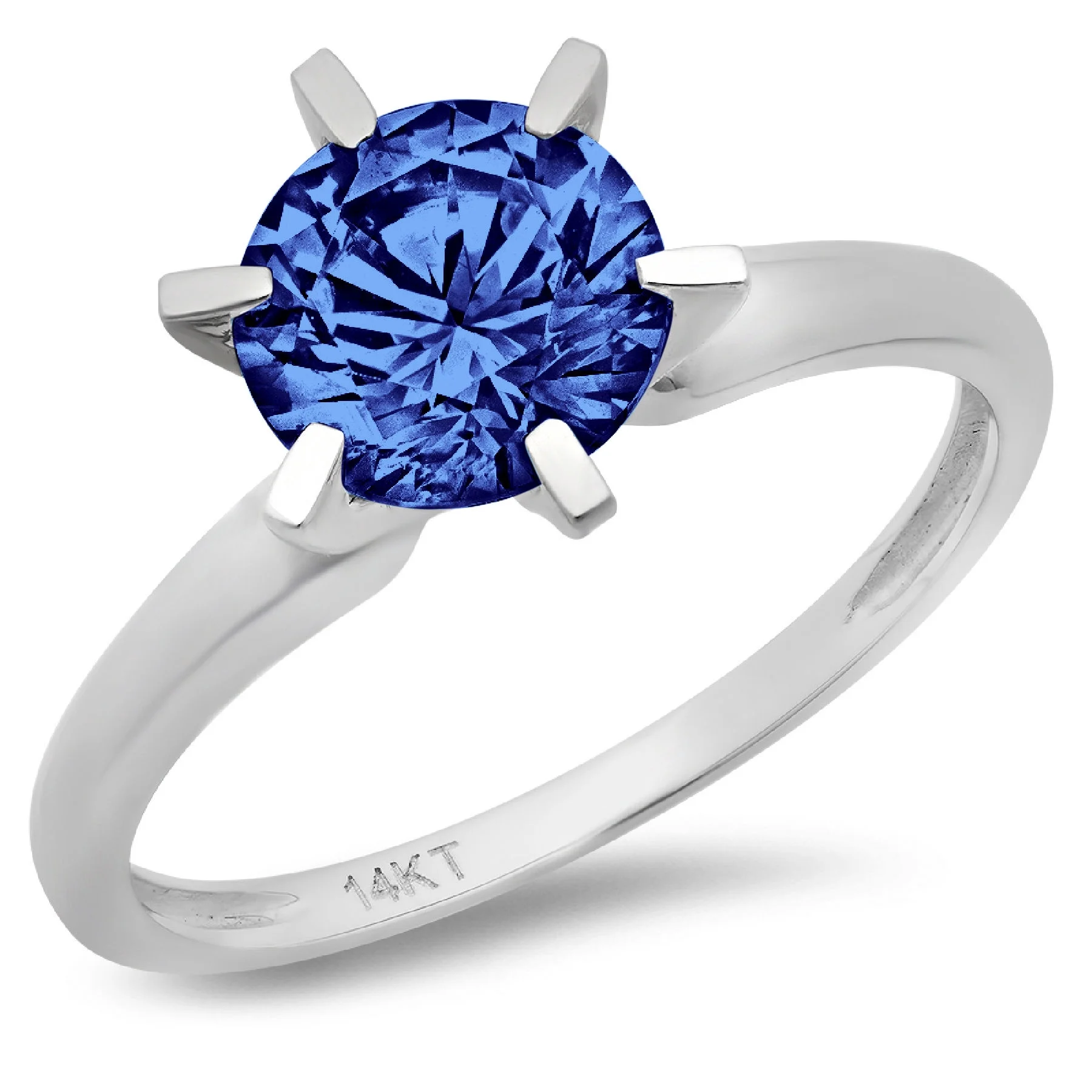 3ct round cut blue simulated tanzanite 18k white gold anniversary engagement ring size 9.5