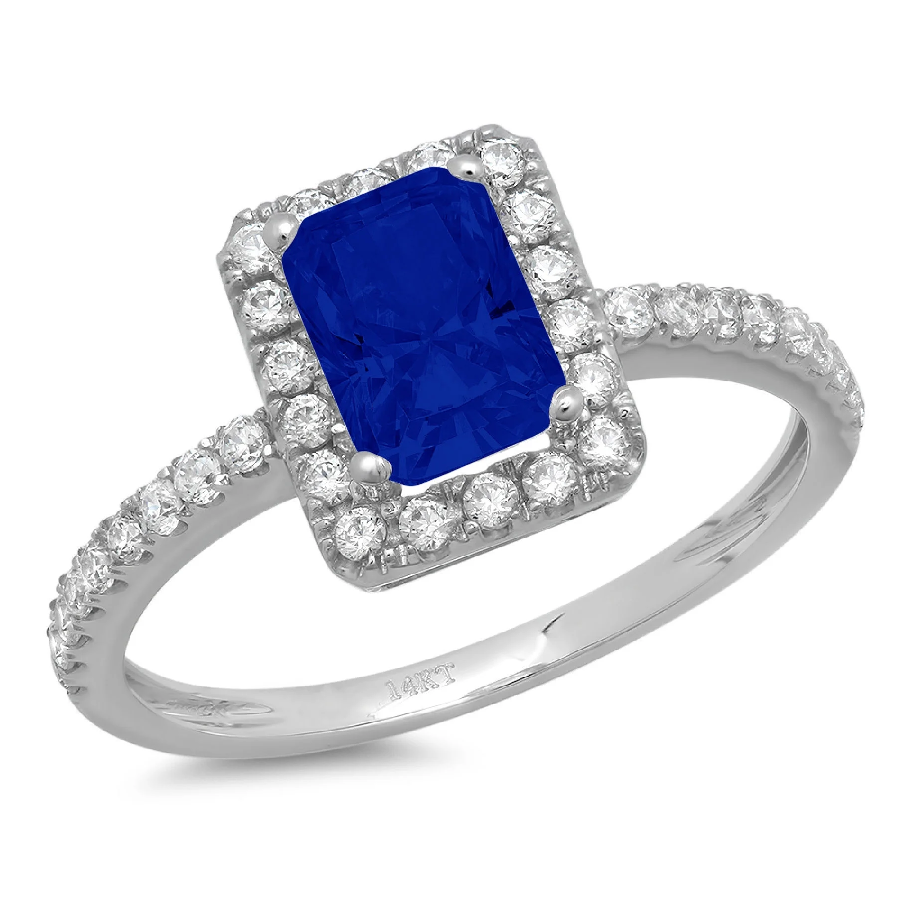 1.96ct emerald cut simulated blue sapphire 14k white gold anniversary engagement halo ring size 9.5