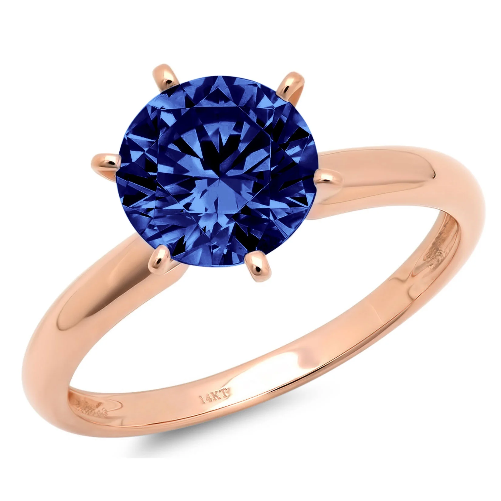 2.5ct round cut blue simulated tanzanite 18k rose gold anniversary engagement ring size 9.5