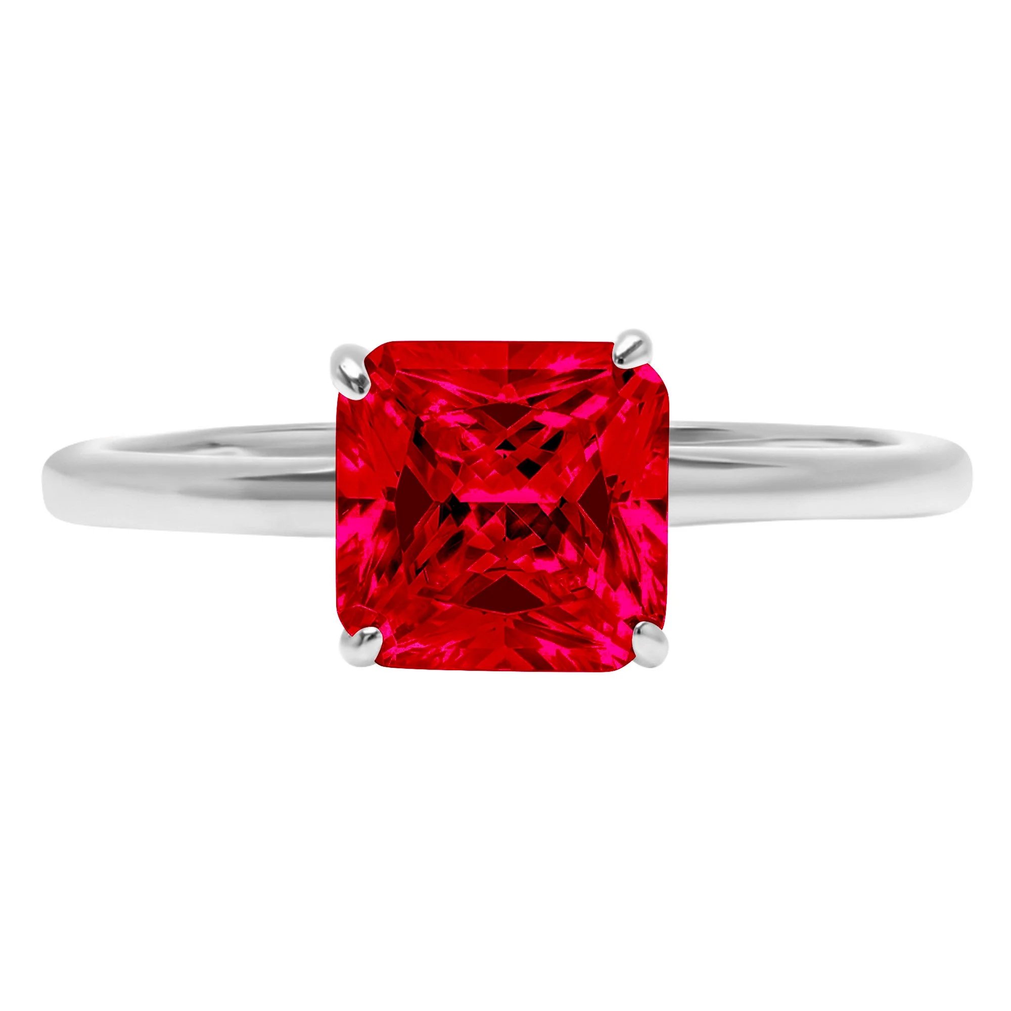 1.5ct asscher cut red simulated ruby 14k white gold anniversary engagement ring size 9.5