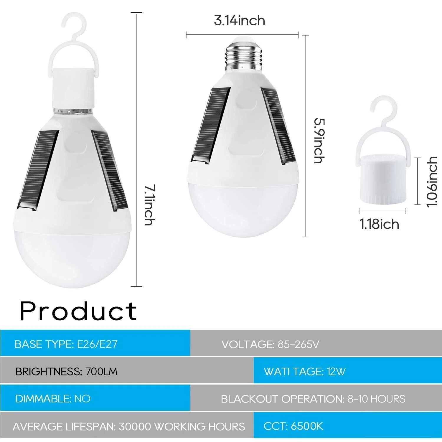 12W LED Solar Panel Bulb Light Portable Outdoor Tent Lamp Yard Garden Camping