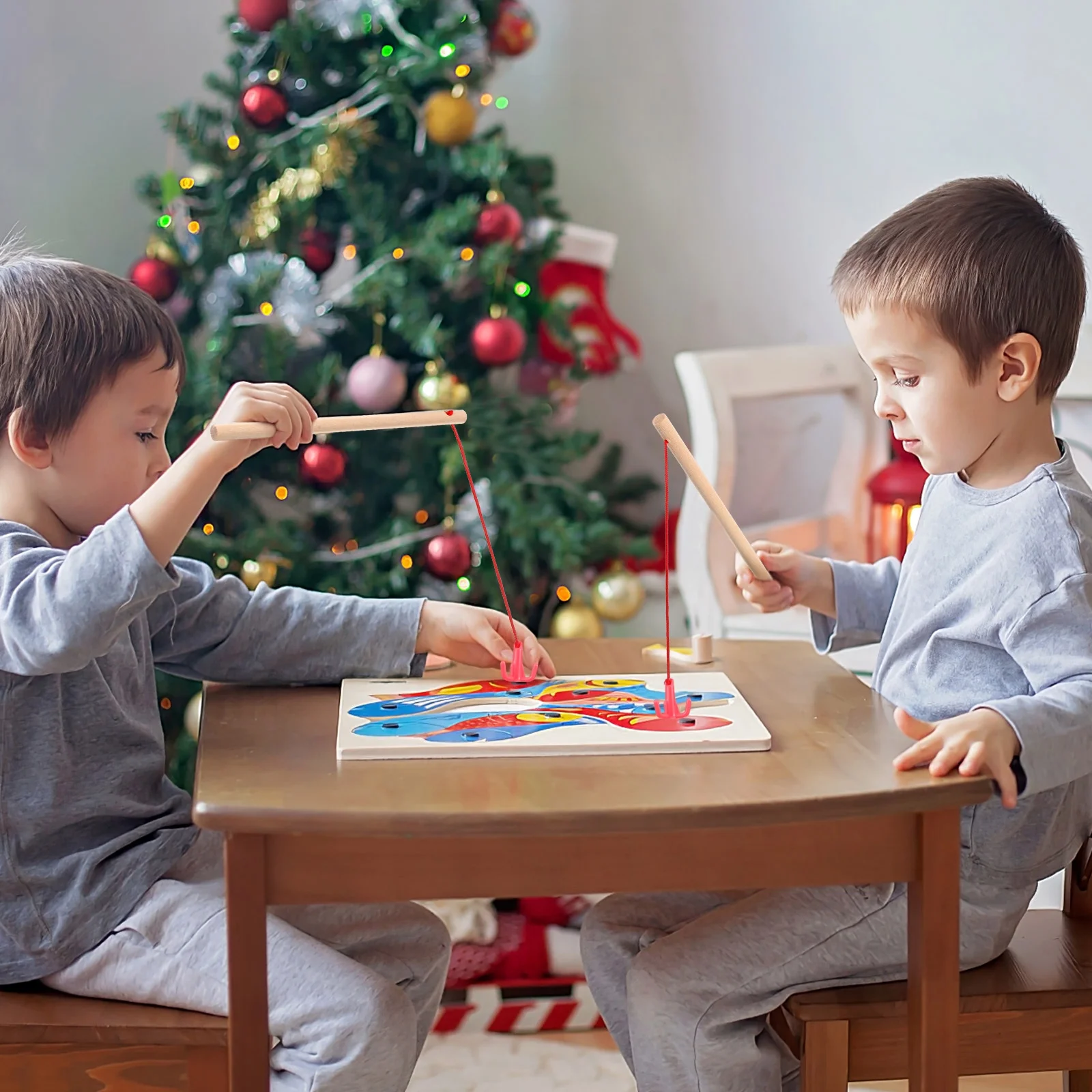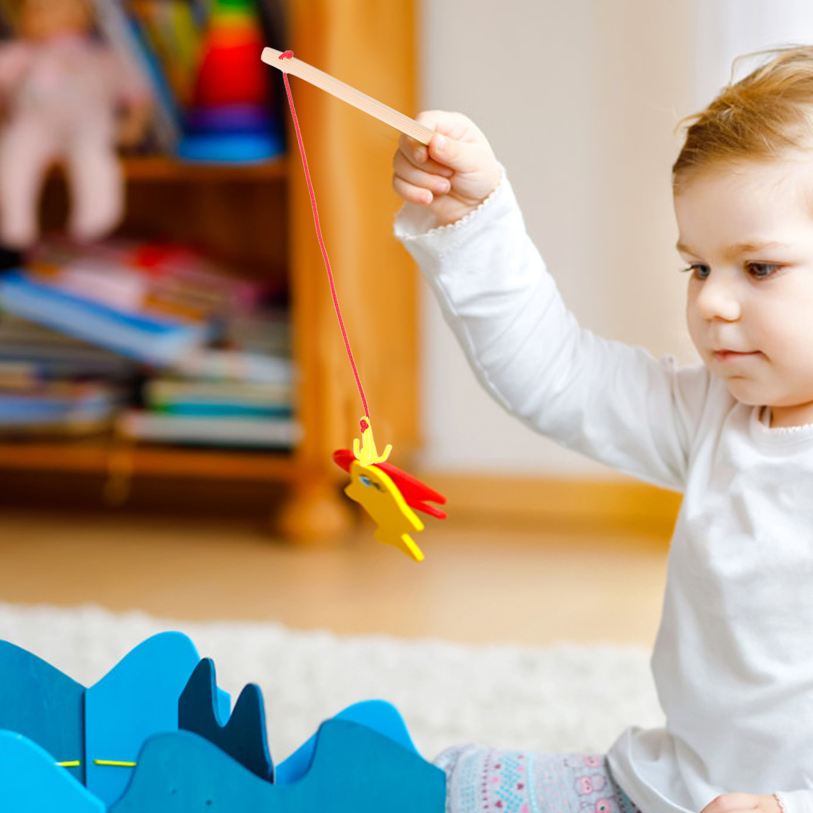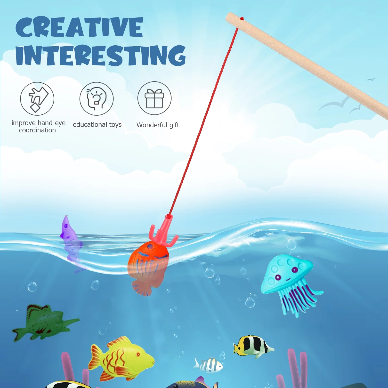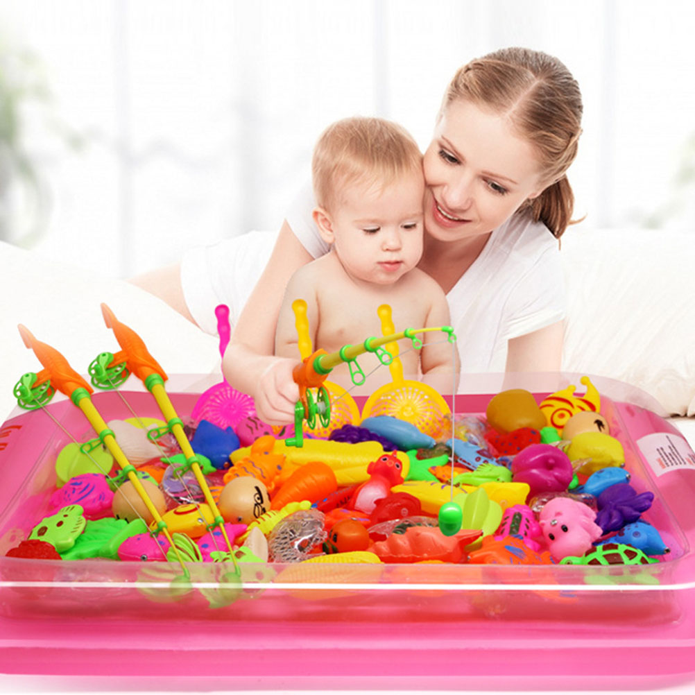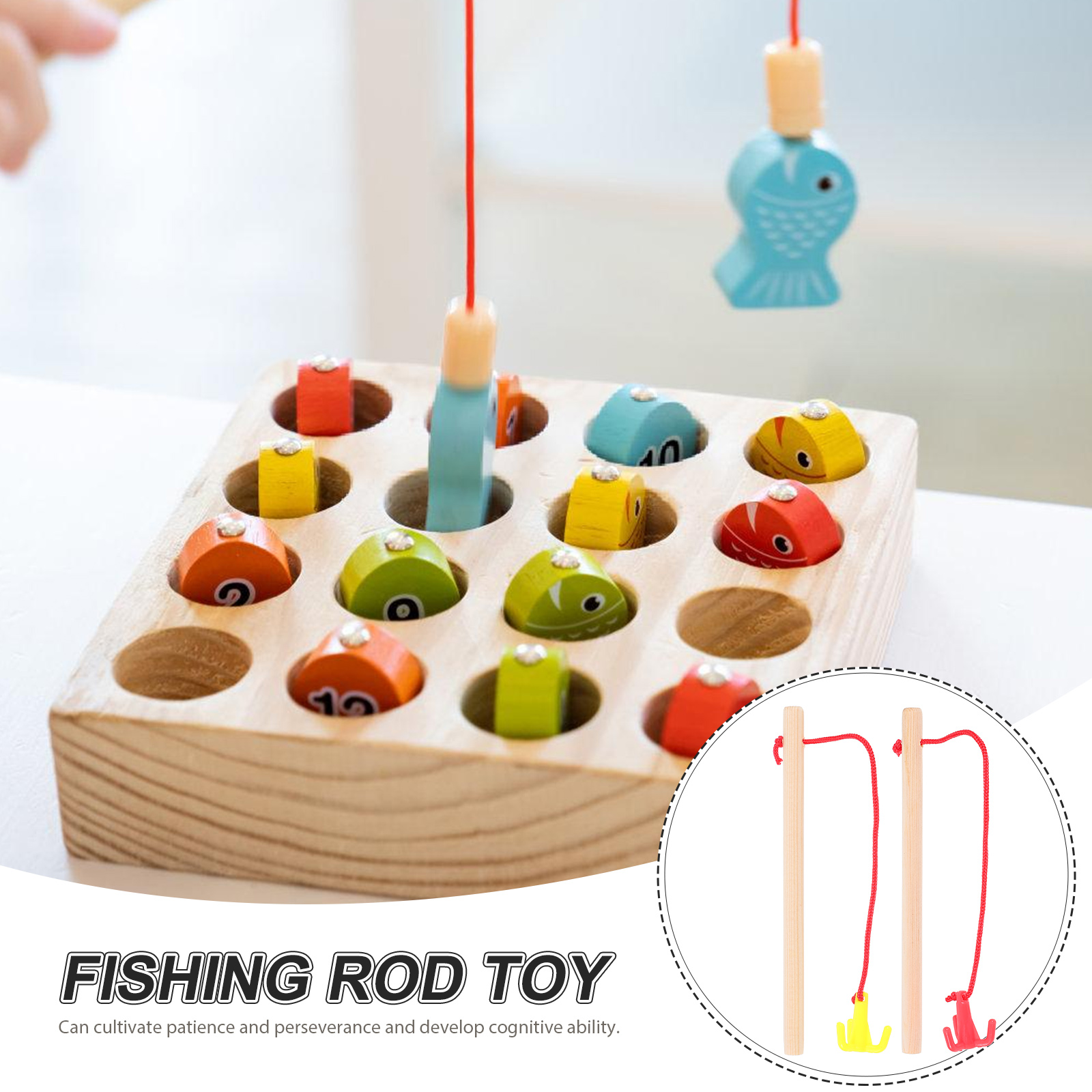 Baby Magnetic Fishing Toy Rod Sports Toys for Toddlers Wooden Children Rods 4 Pcs