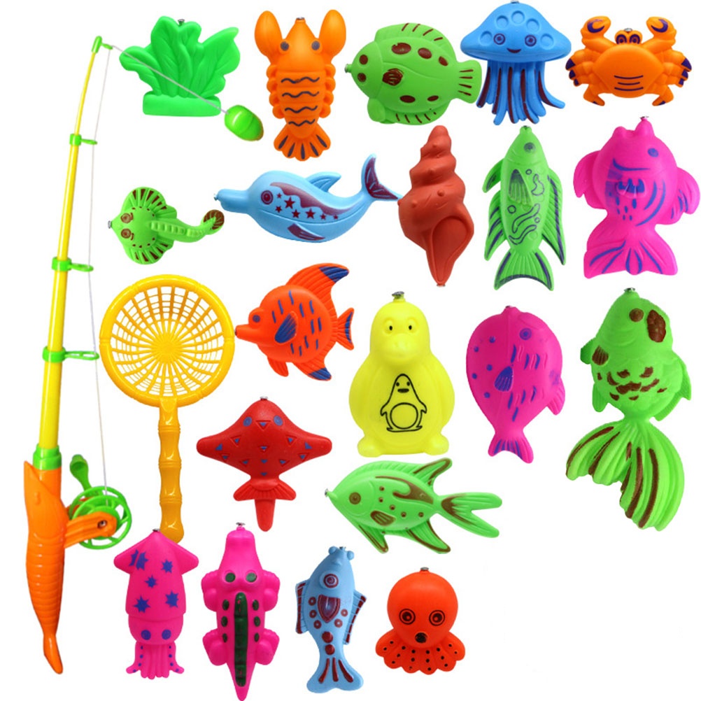 22pcs Magnetic Rod Net Fishing Toys Suit Fishing Game Set for Children Boy Girl (20pcs Fish + 1pc Rod + 1pc Net, Random Pattern and Color)