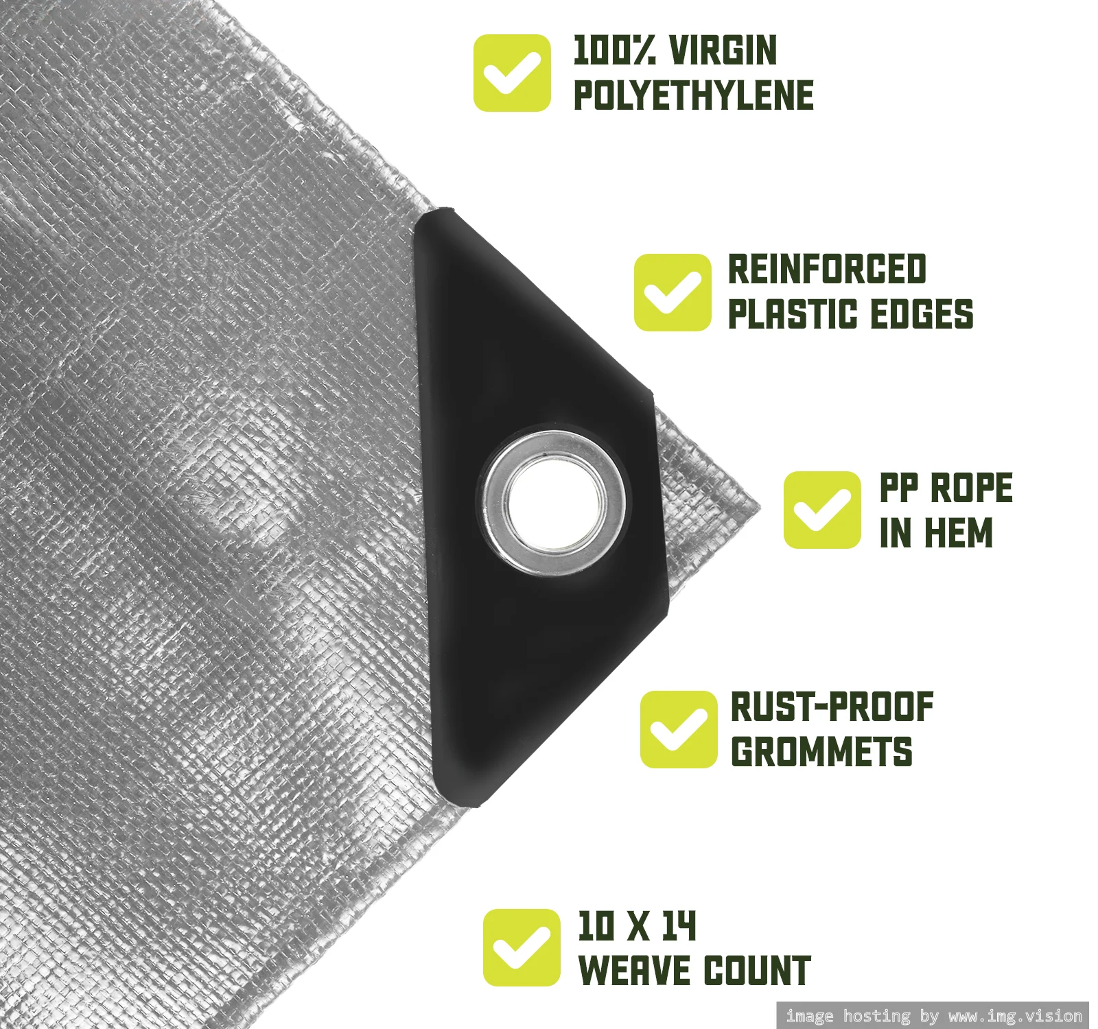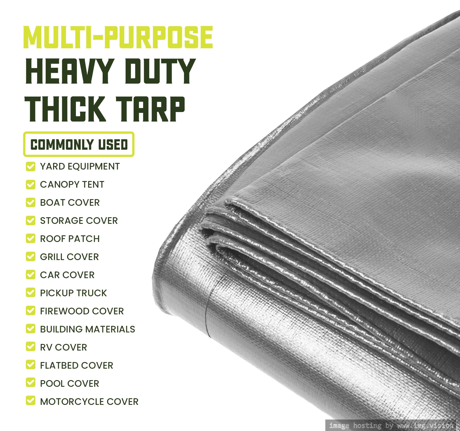 6' x 8' 12 mil Green Tarp Extra Heavy Duty 3 Ply Reinforced Canopy 6 oz (Finished Size 5'.6 x 7'.6)