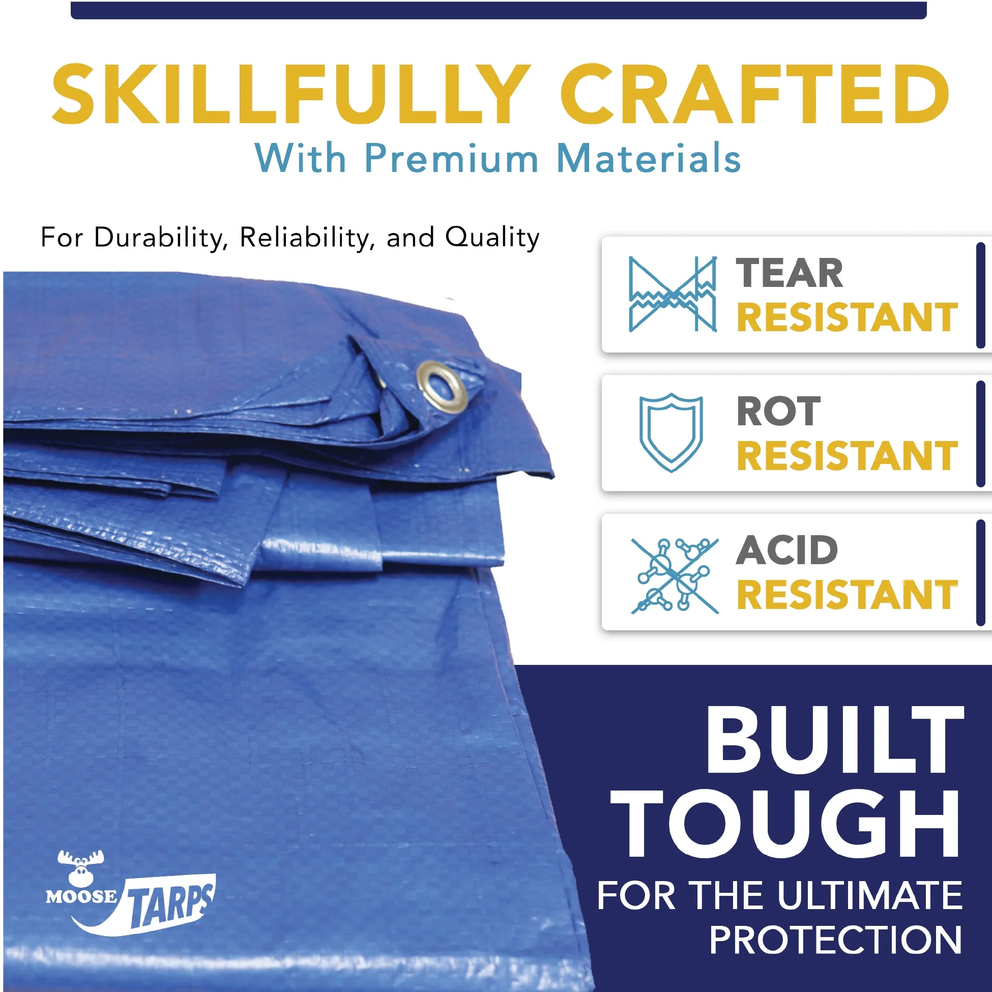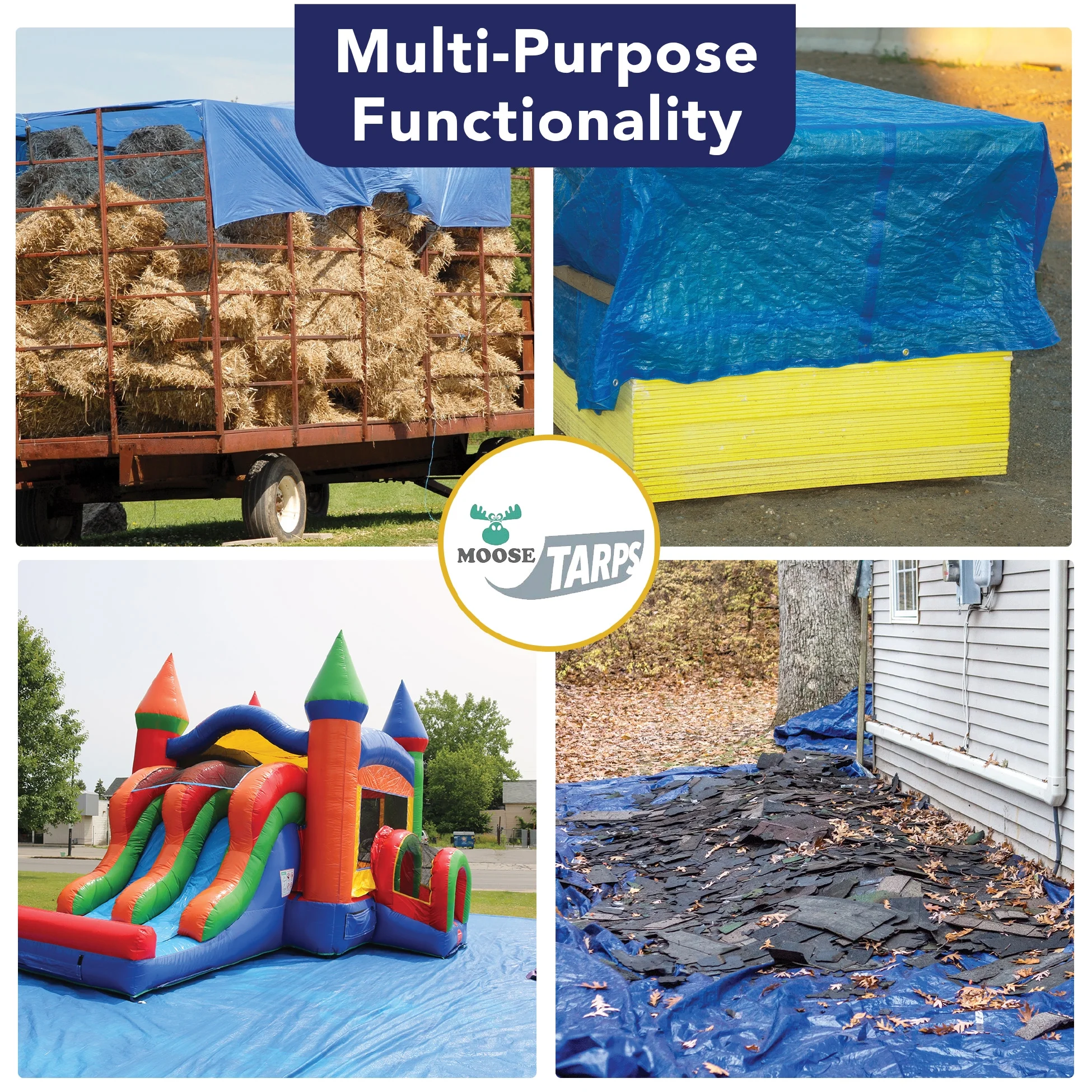 Moose Supply 5 Mil Waterproof Blue Poly Tarp Covers with Grommets, 15' x 15'