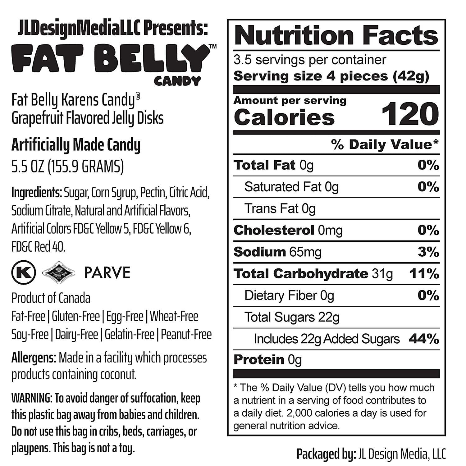 Fat Belly Karens Gummy Grapefruit Flavored Fruit Jelly Discs Funny Halloween Fat Free, Gluten Free Candy Gag Gift for Teens, Girls, Boys and Kids