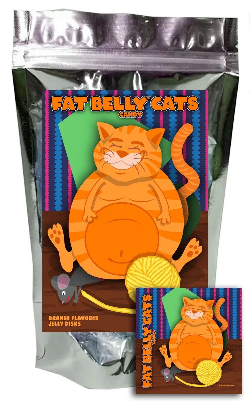 Fat Belly Cats Gummy Orange Flavored Fruit Jelly Discs Funny Unique Easter Basket Stuffer Candy Gift Birthday for Girl, Boy & Teens