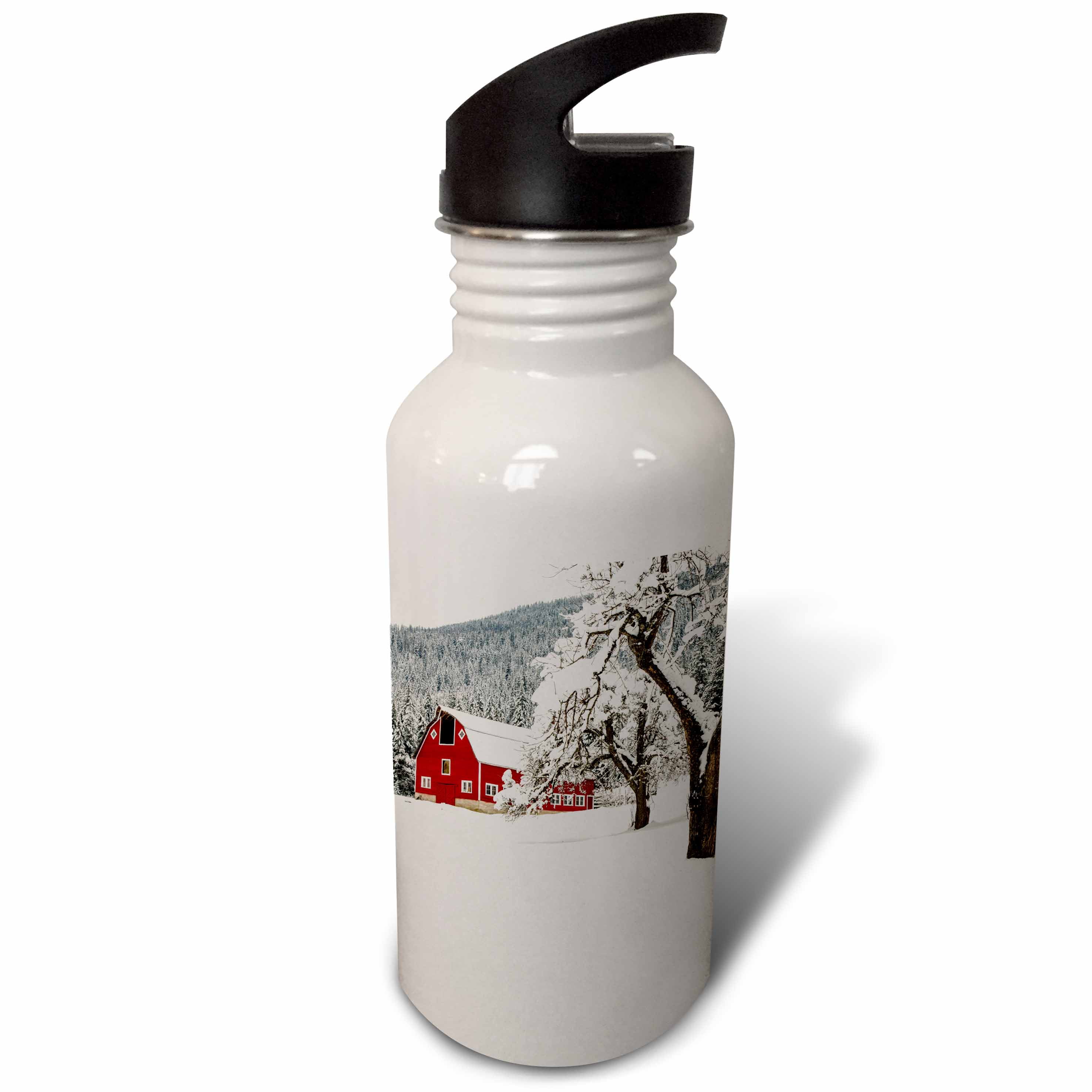 Fresh snow on red barn near Salmo, British Columbia, Canada. 21 oz Sports Water Bottle wb-206245-1