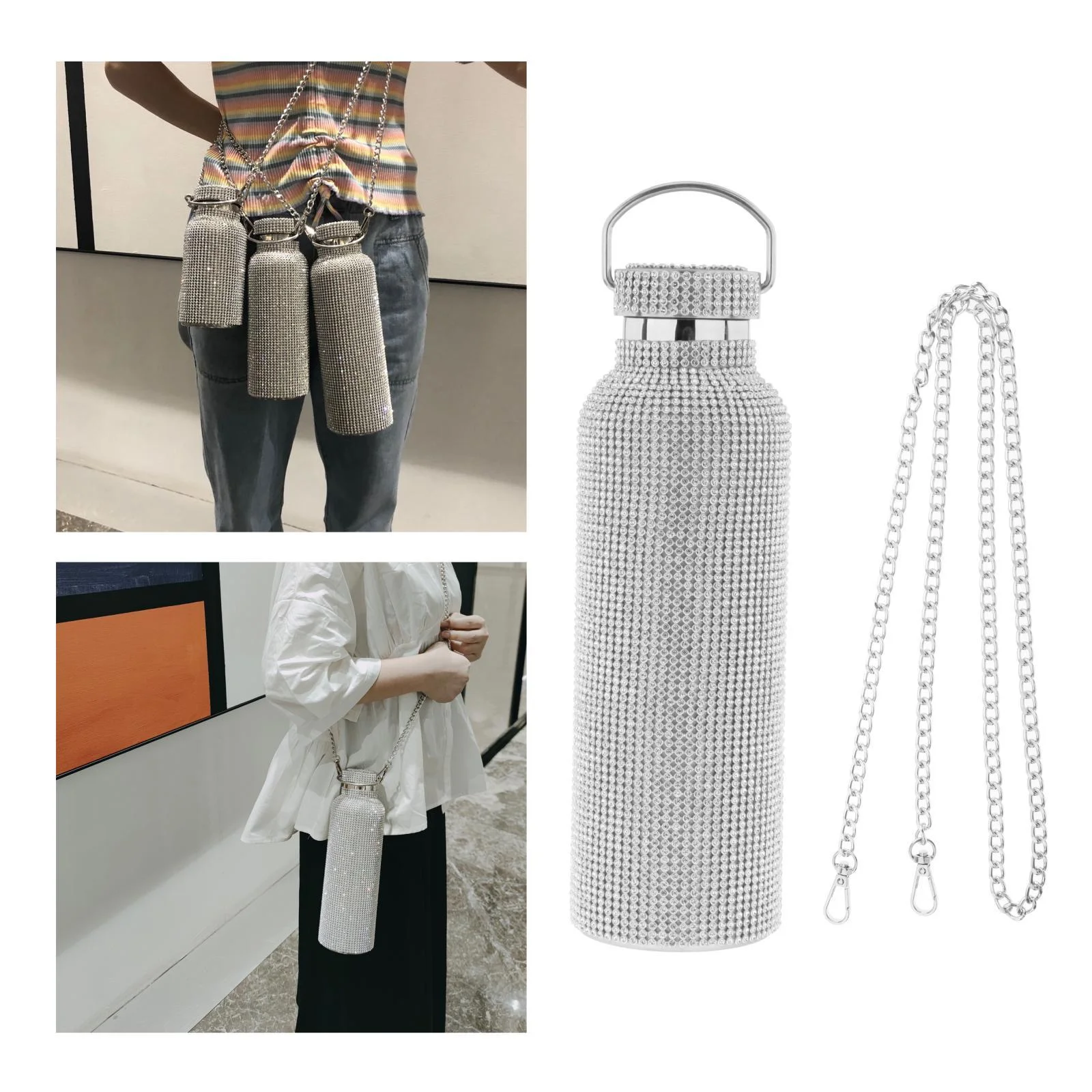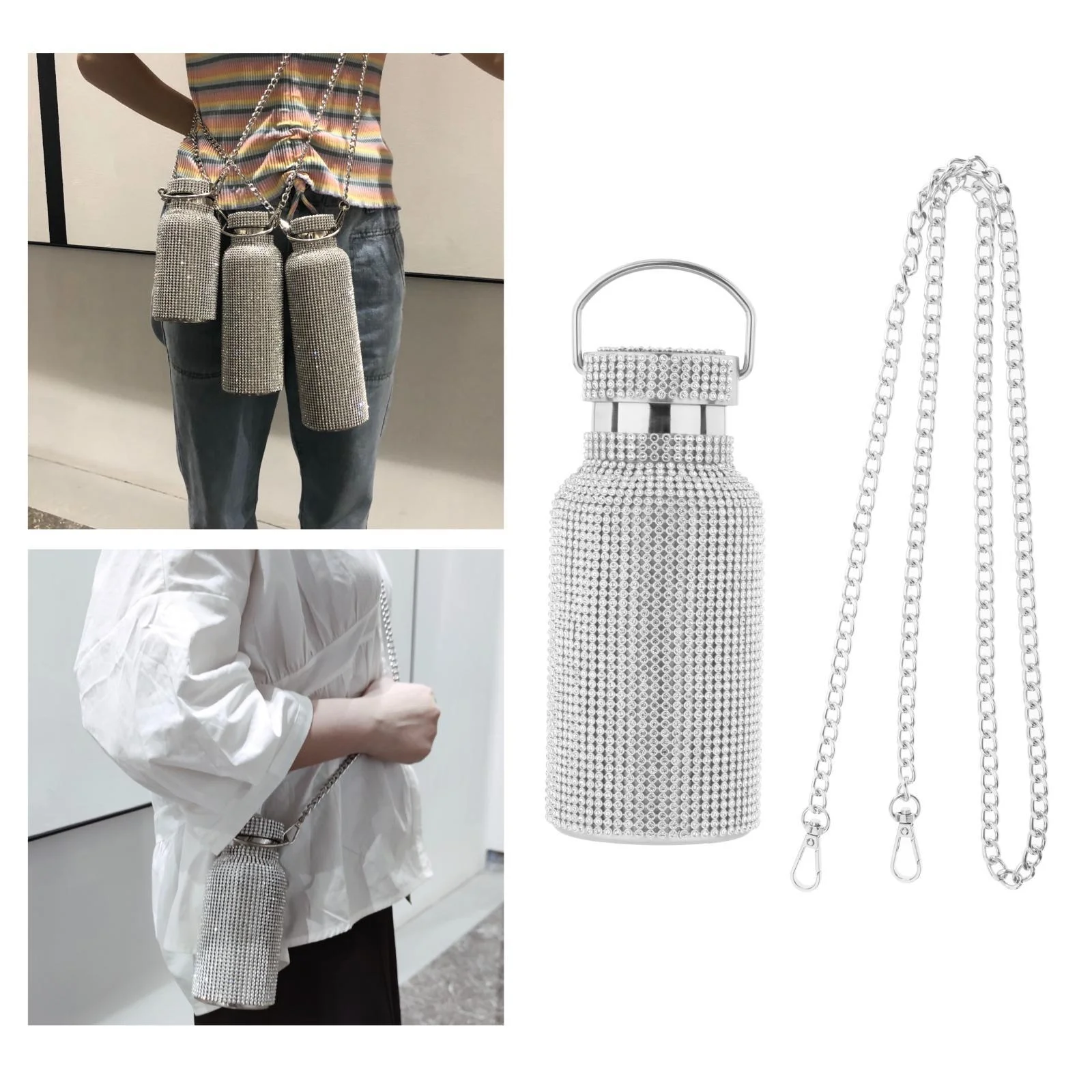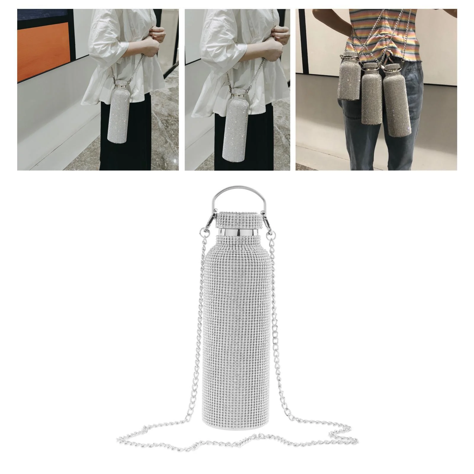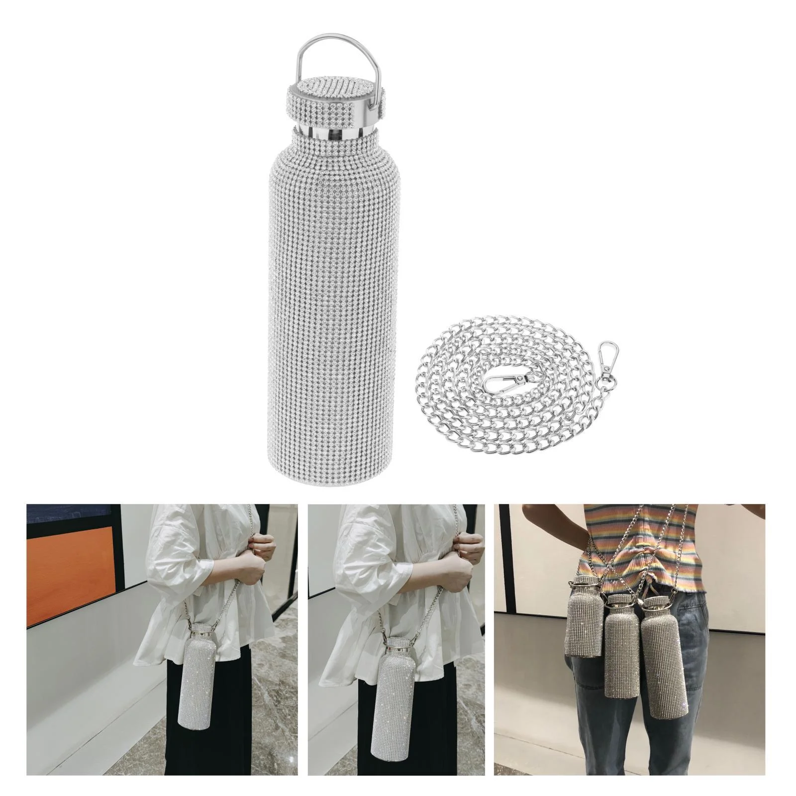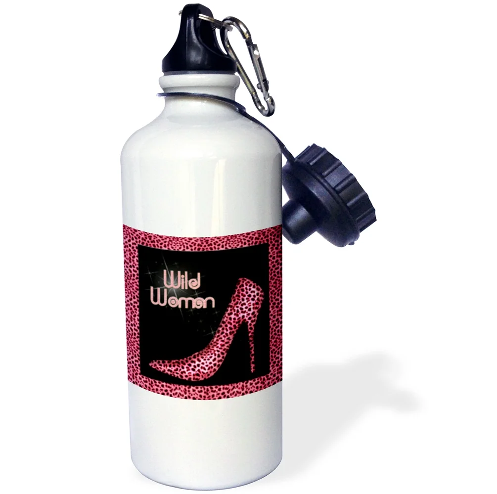 3dRose Pink Cheetah Print Wild Woman Stiletto Pump and Bling, Sports Water Bottle, 21oz