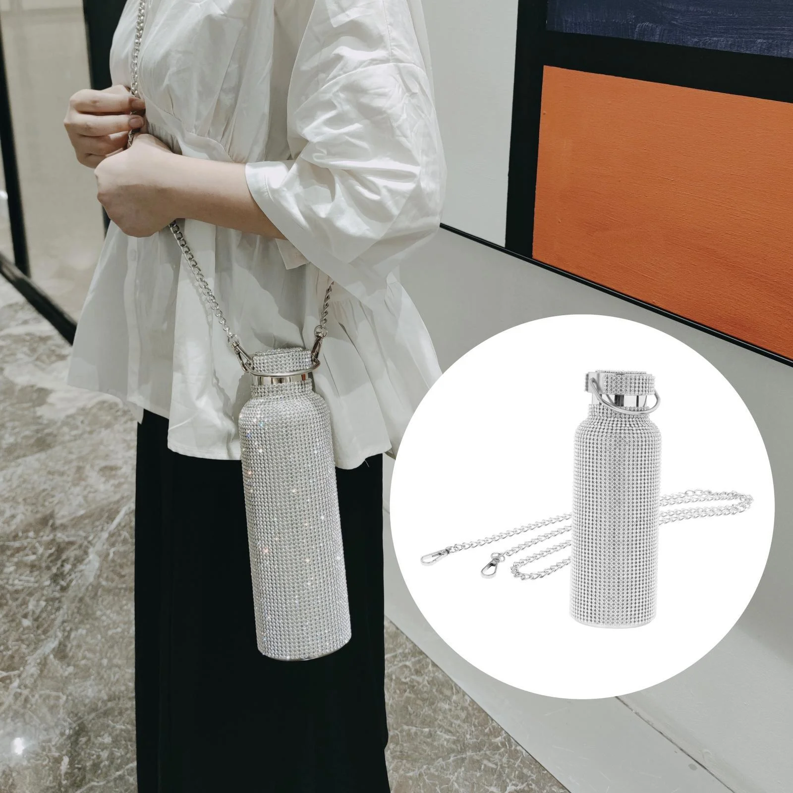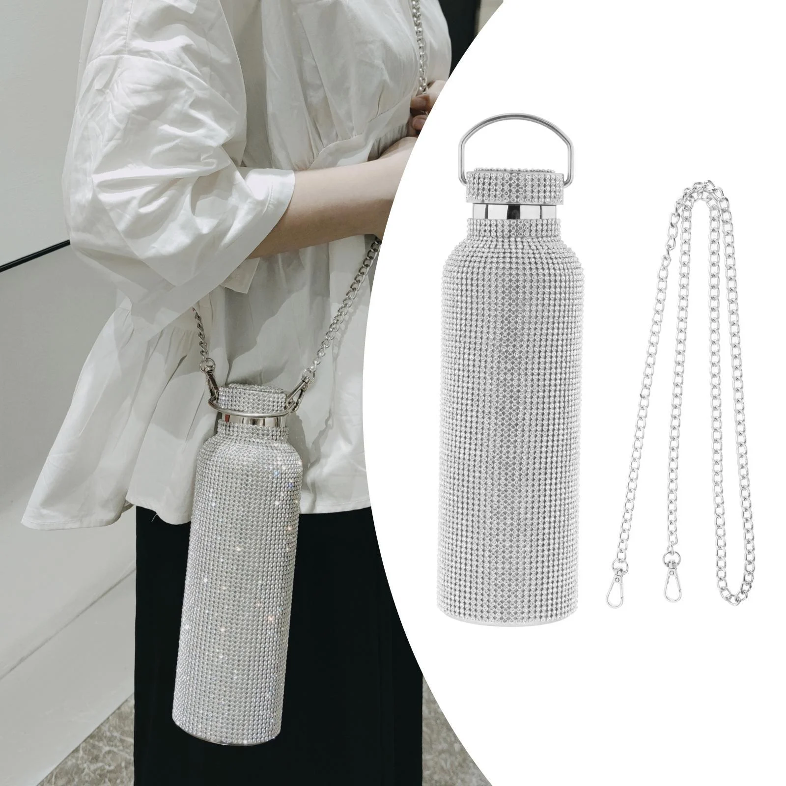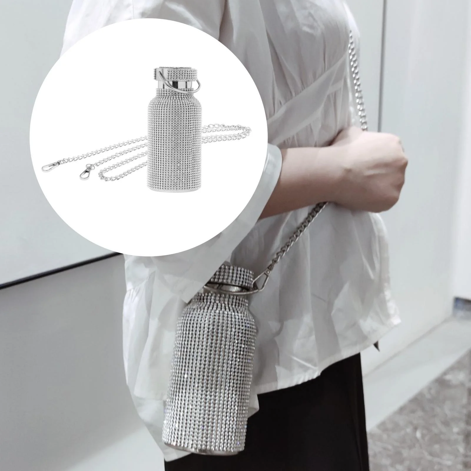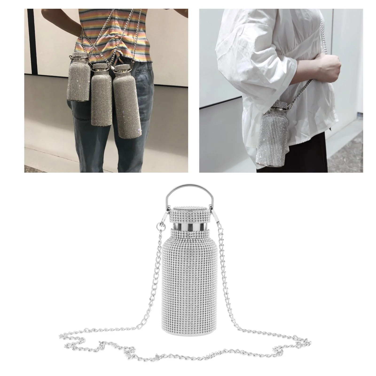 3dRose Pink Cheetah Print Wild Woman Stiletto Pump and Bling, Sports Water Bottle, 21oz