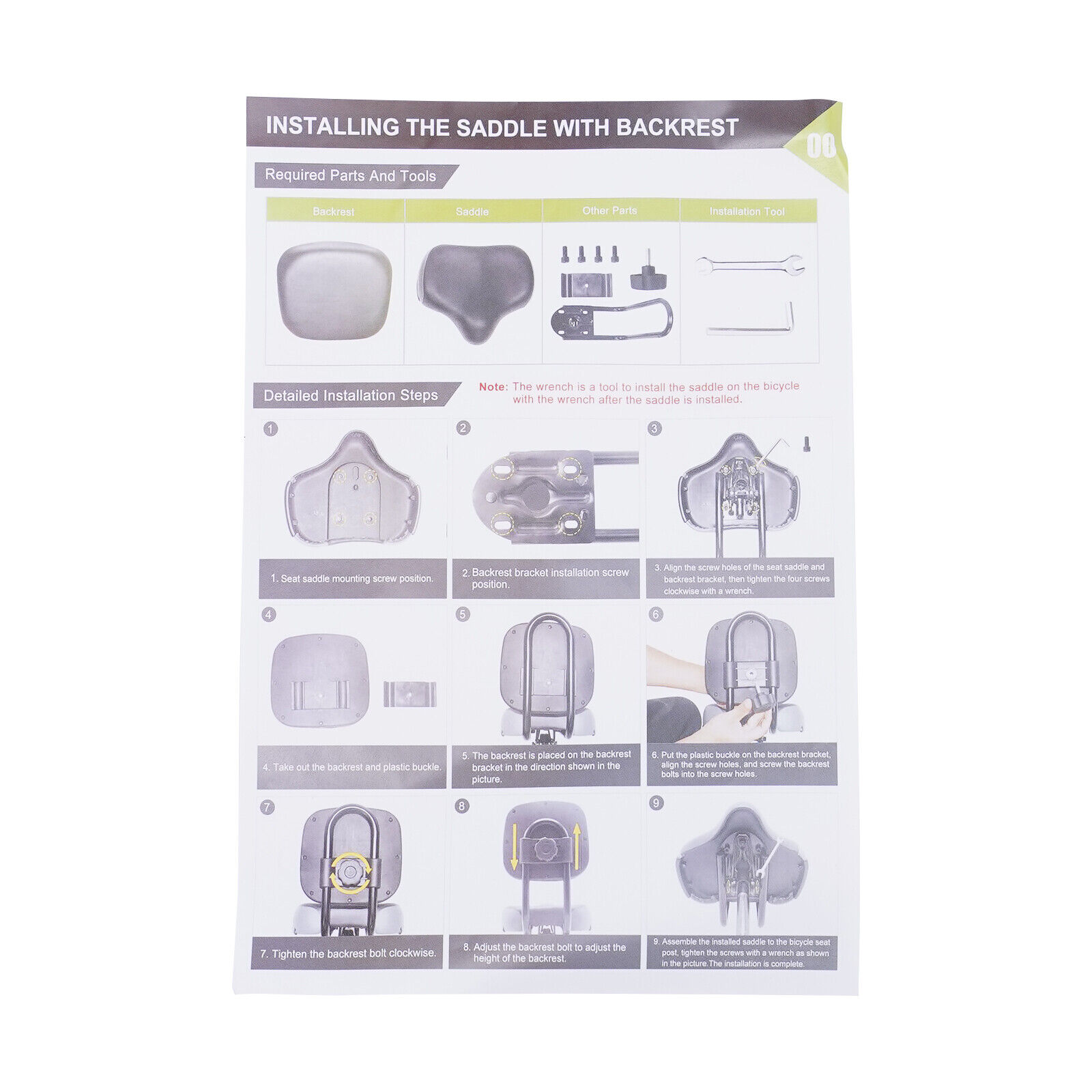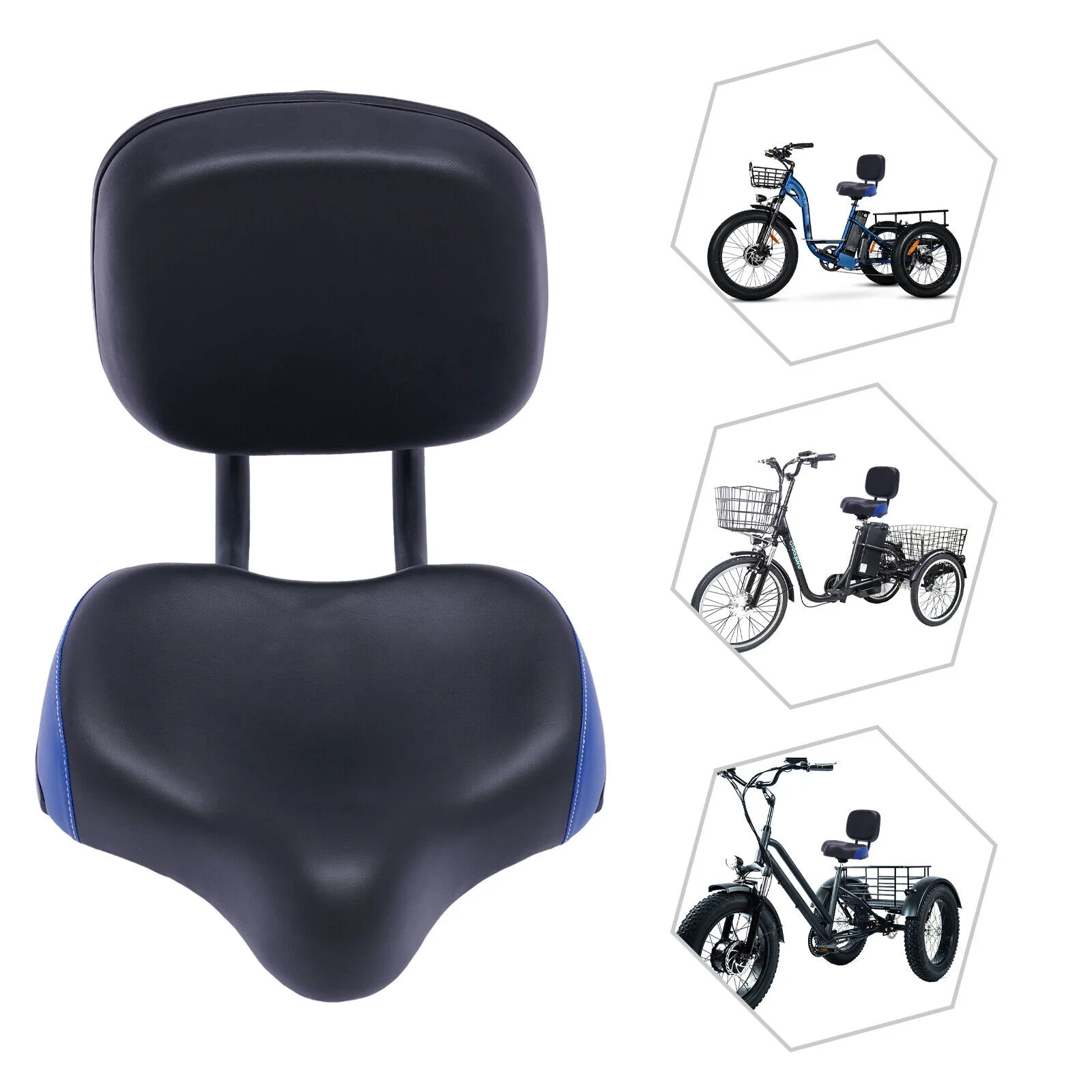FETCOI Universal Bicycle Saddle Bike Seat w/Back Black Soft PU Seat With Backrest