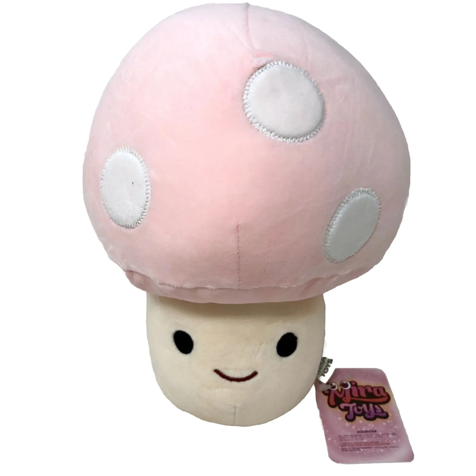 Pink Mushroom Soft Plush Toy Smiling Face Plant Vegetable Plushie 9 inch