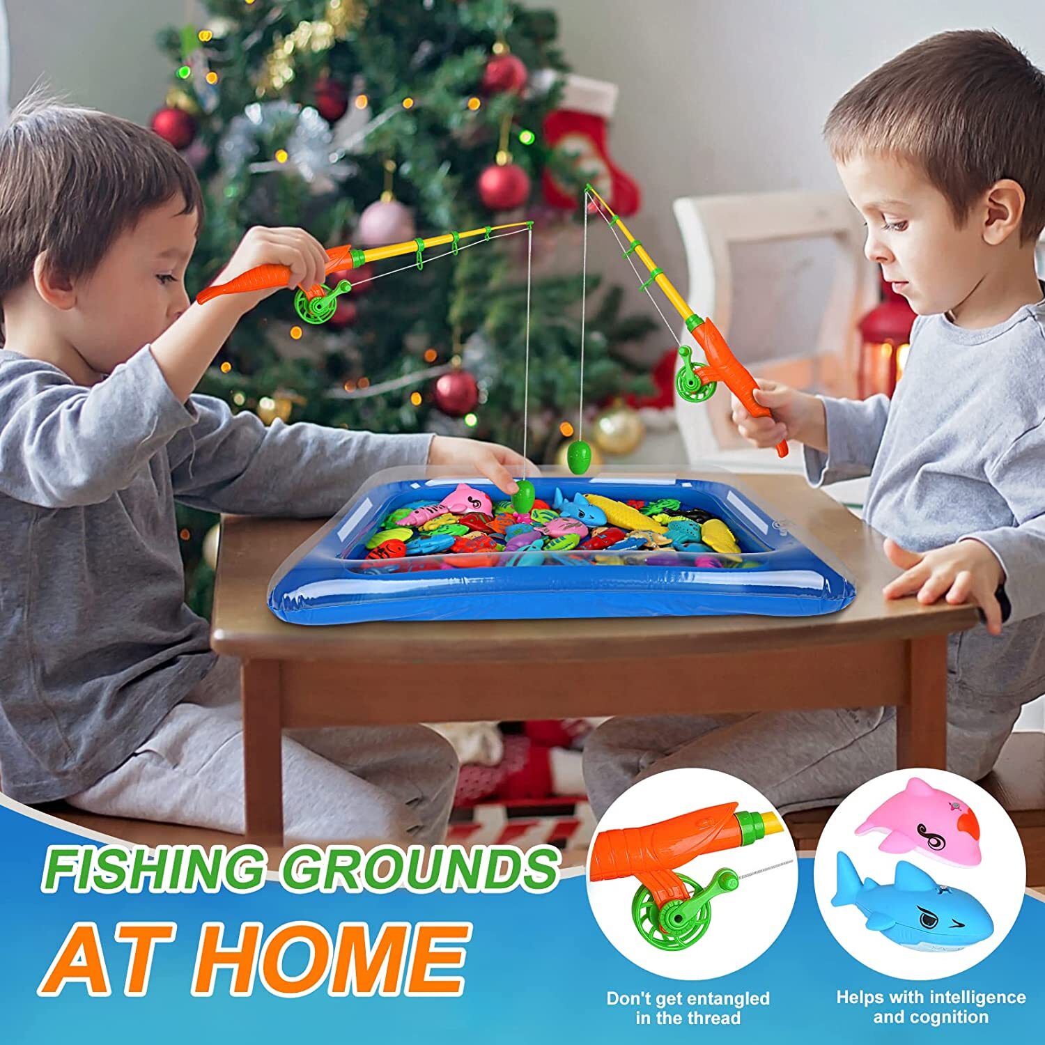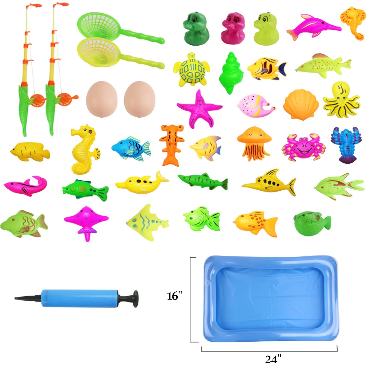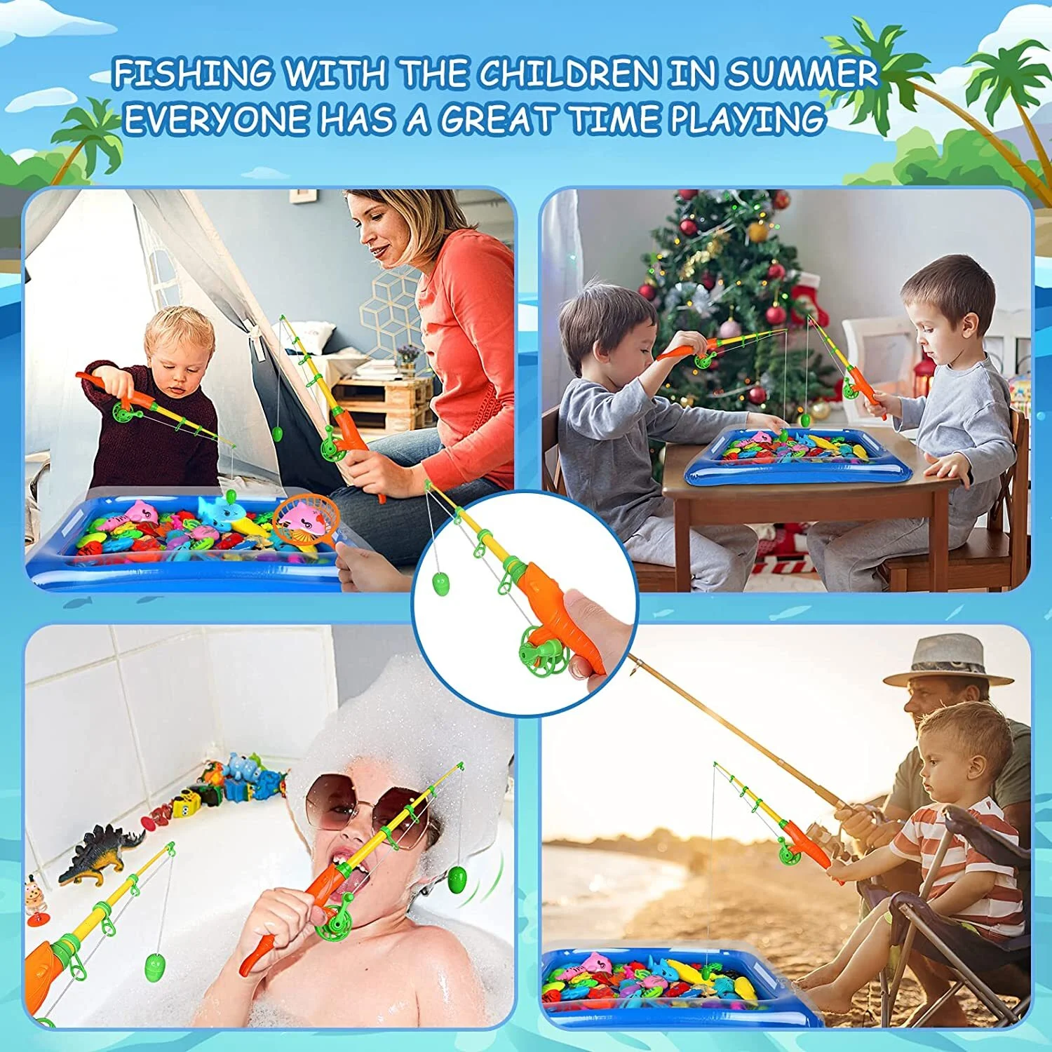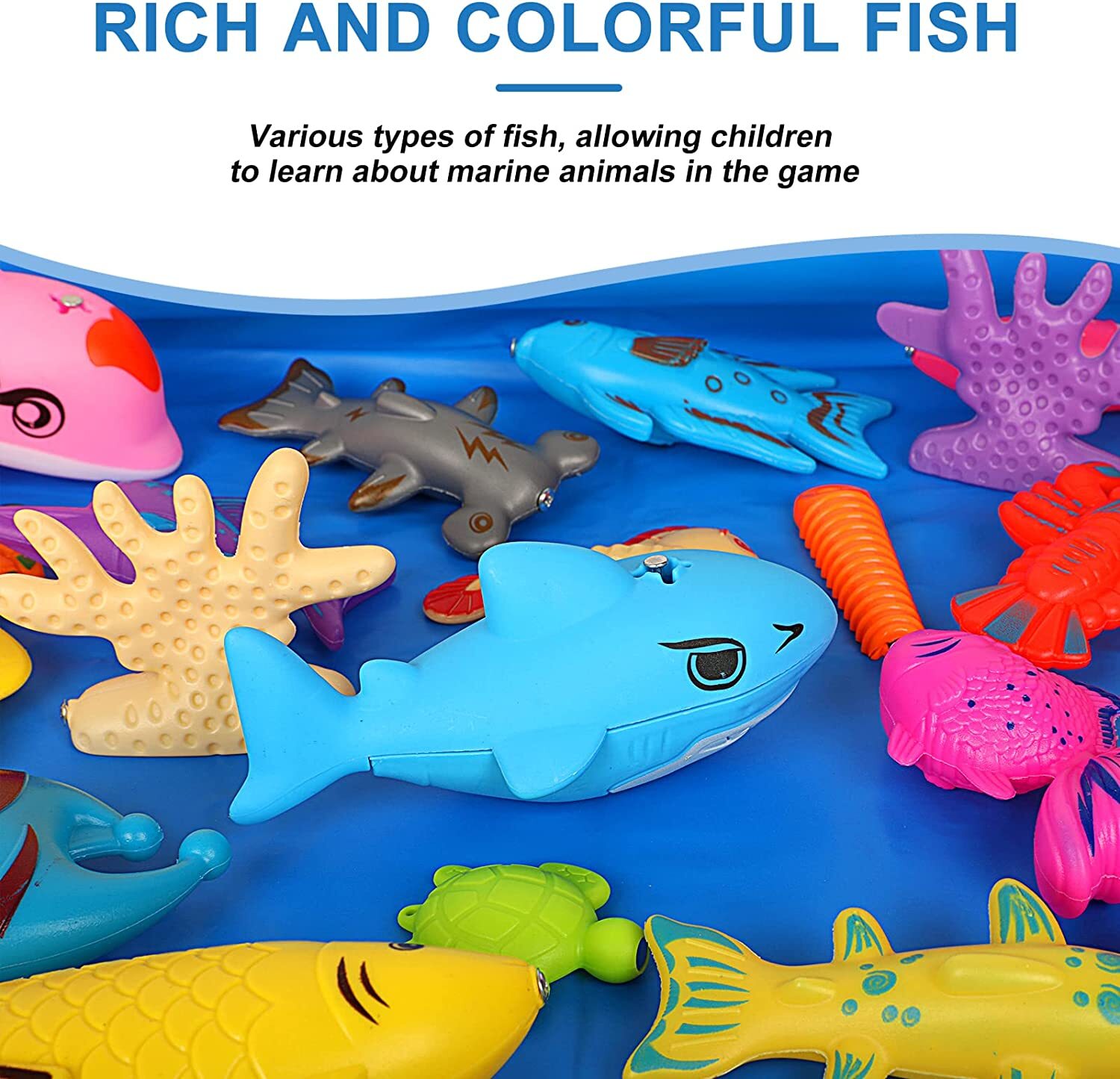 Magnetic Fishing Pool Toys Game for Kids, Water Table Bathtub kid Toy , with Pole Rod Net Color Ocean Sea Animals Gifts for Kids 4-8