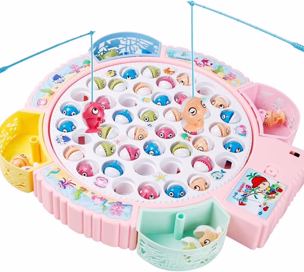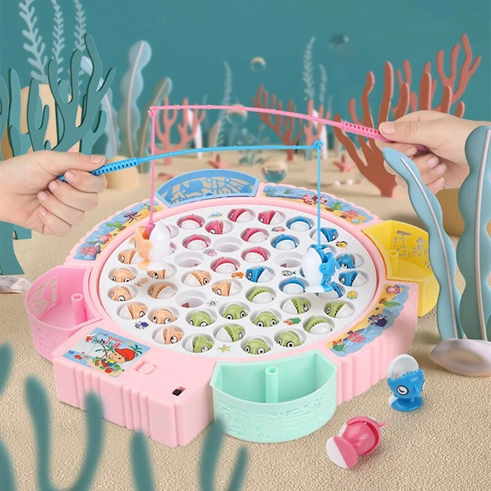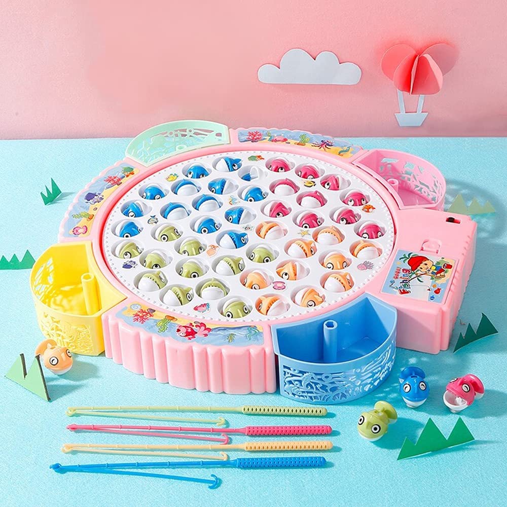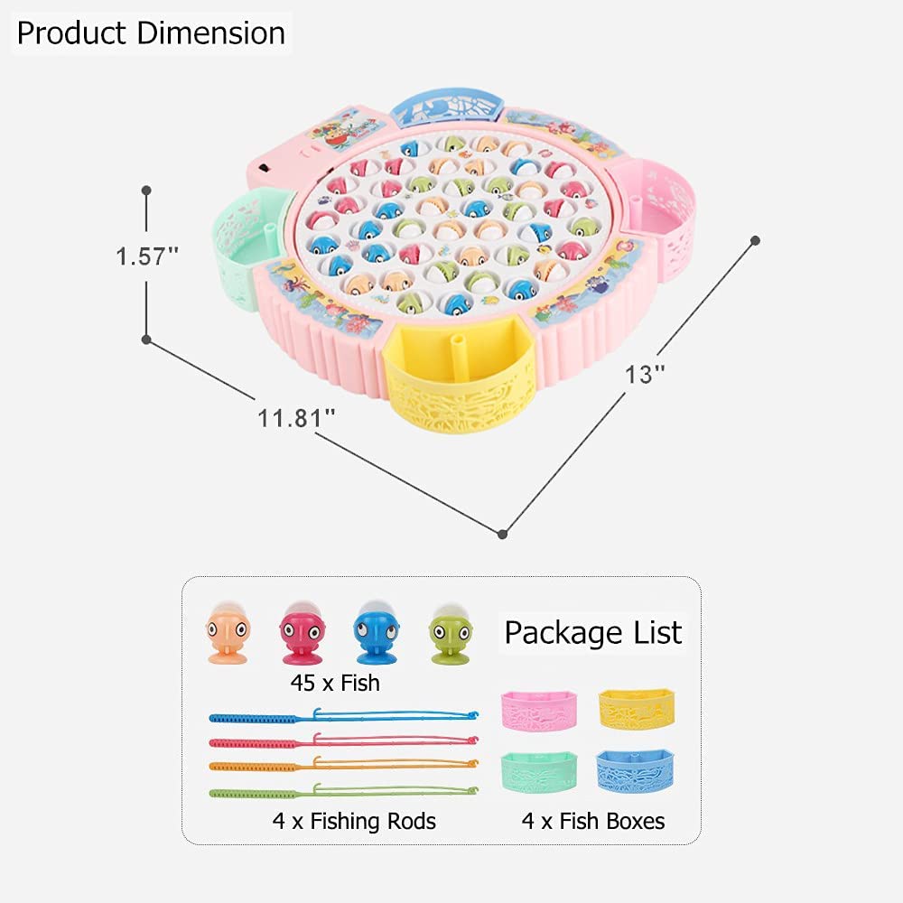 Magnetic Fishing Game Toy Pole and Rod Fish Board Rotating with Music Includes 45 Fish and 4 Fishing Poles Fine Motor Skill Training Great Birthday for Children Kids Toddles Boys Girls