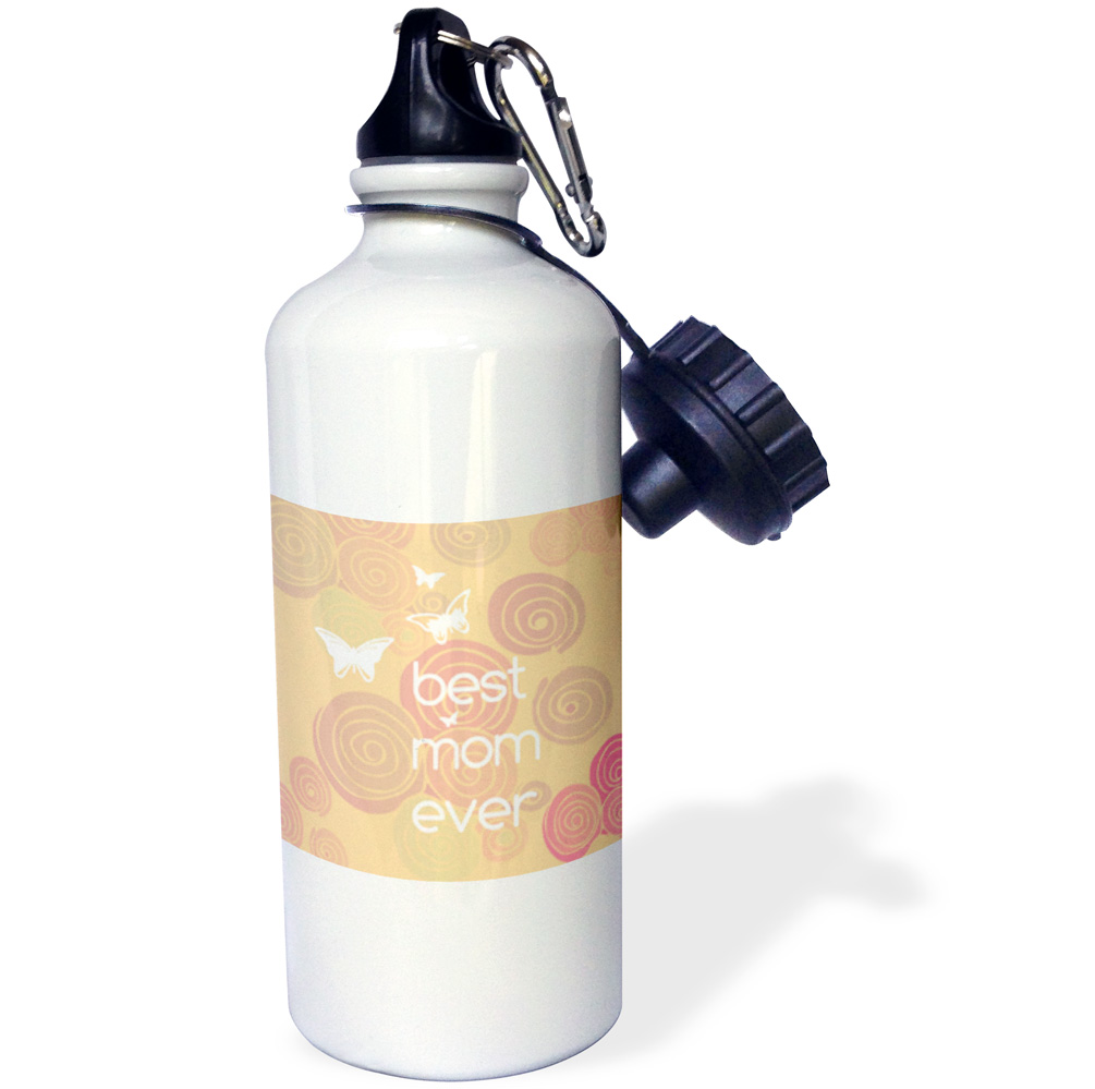 3dRose Best Mom Ever Pink Swirls and Butterflies, Sports Water Bottle, 21oz