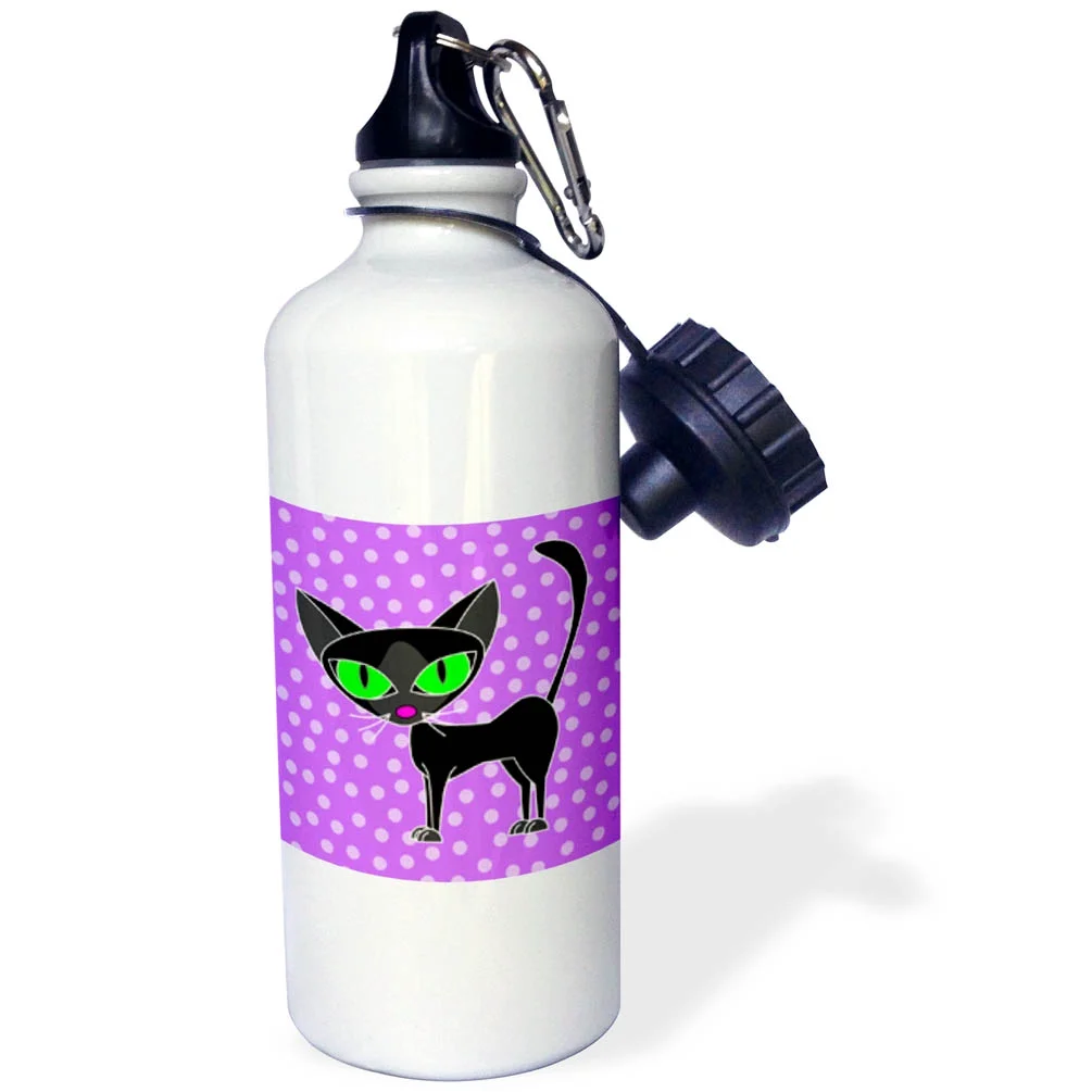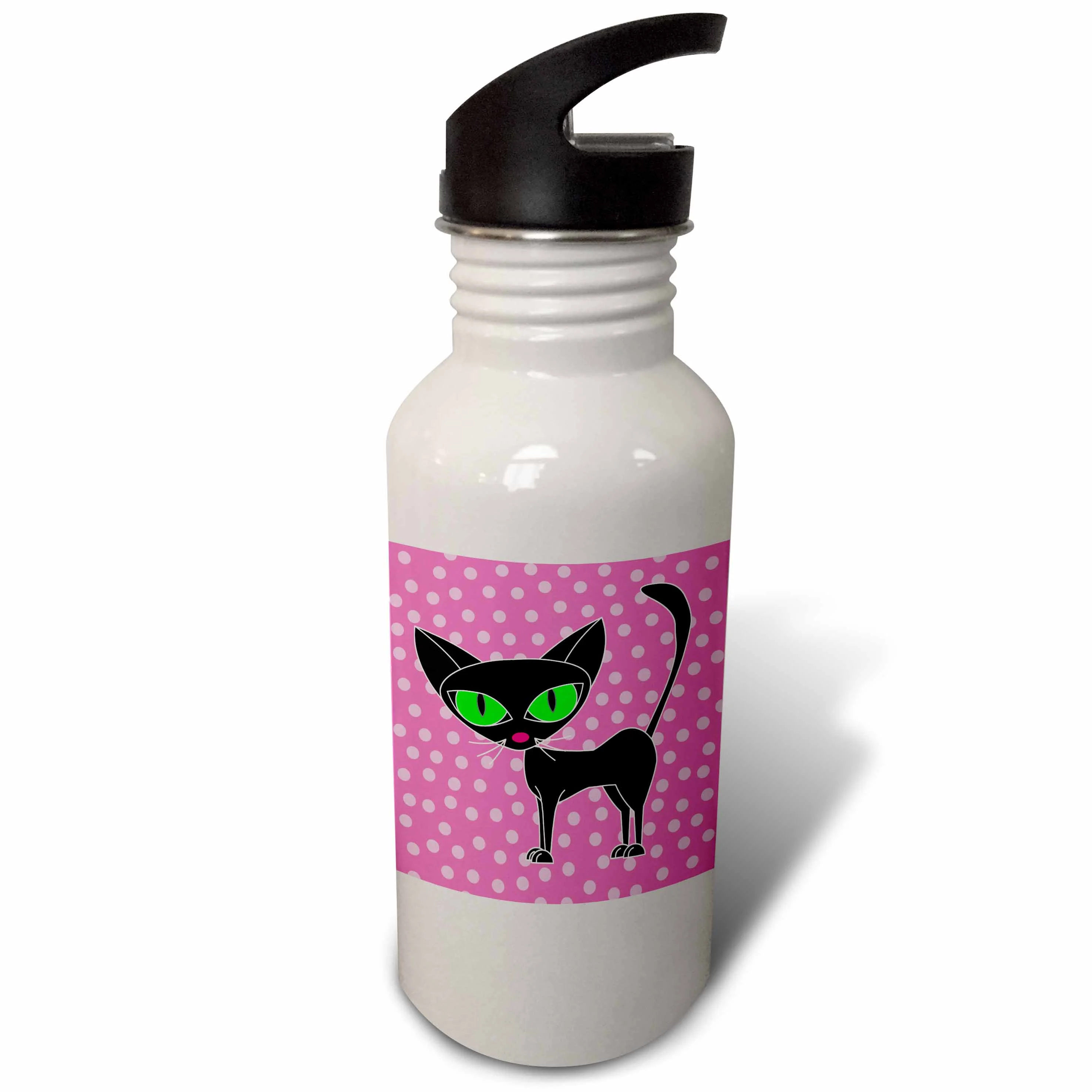 Fancy Feline Black Cat Pink Dots Design 21 oz Sports Water Bottle wb-6357-1
