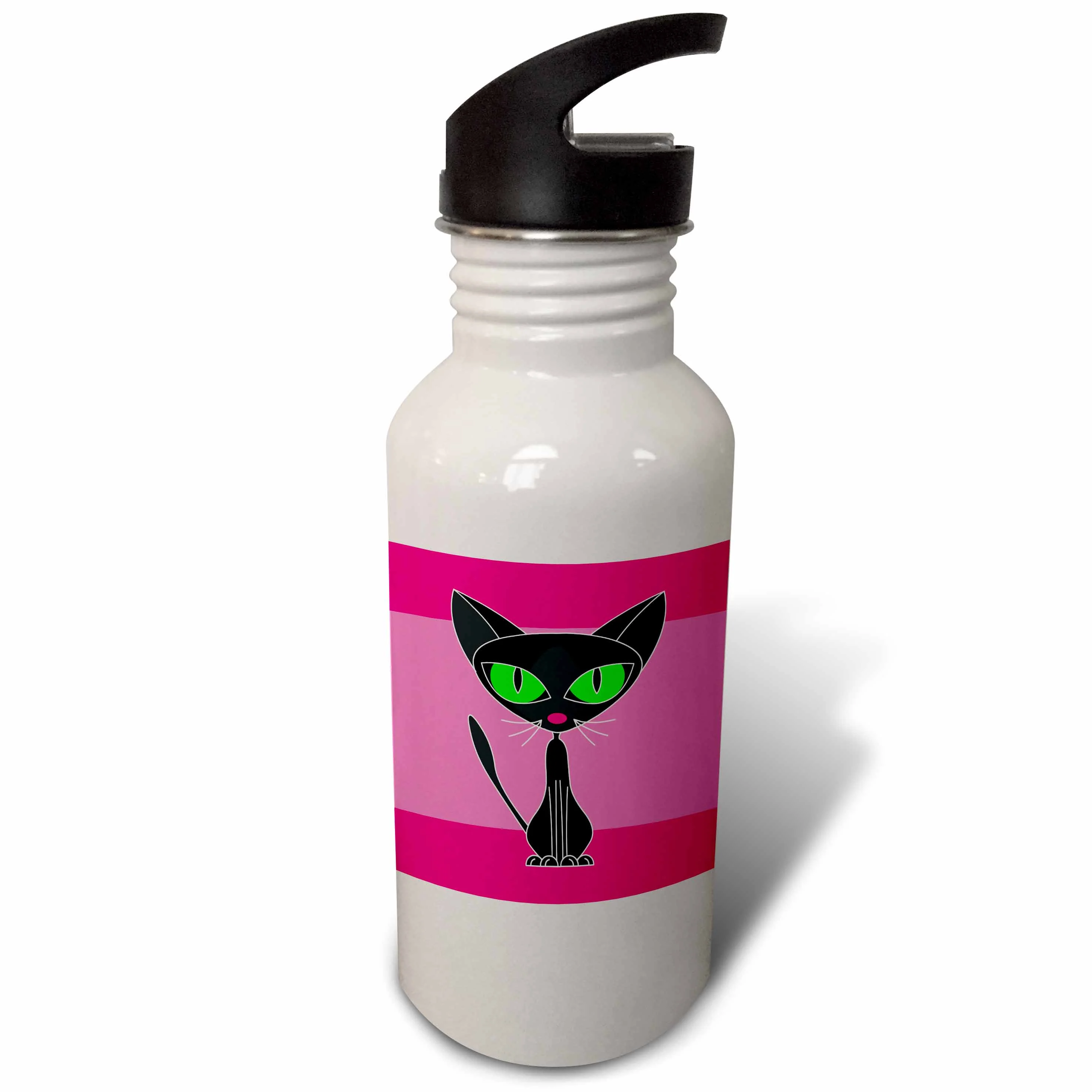 Fancy Feline Black Cat Design in Pink 21 oz Sports Water Bottle wb-6169-1