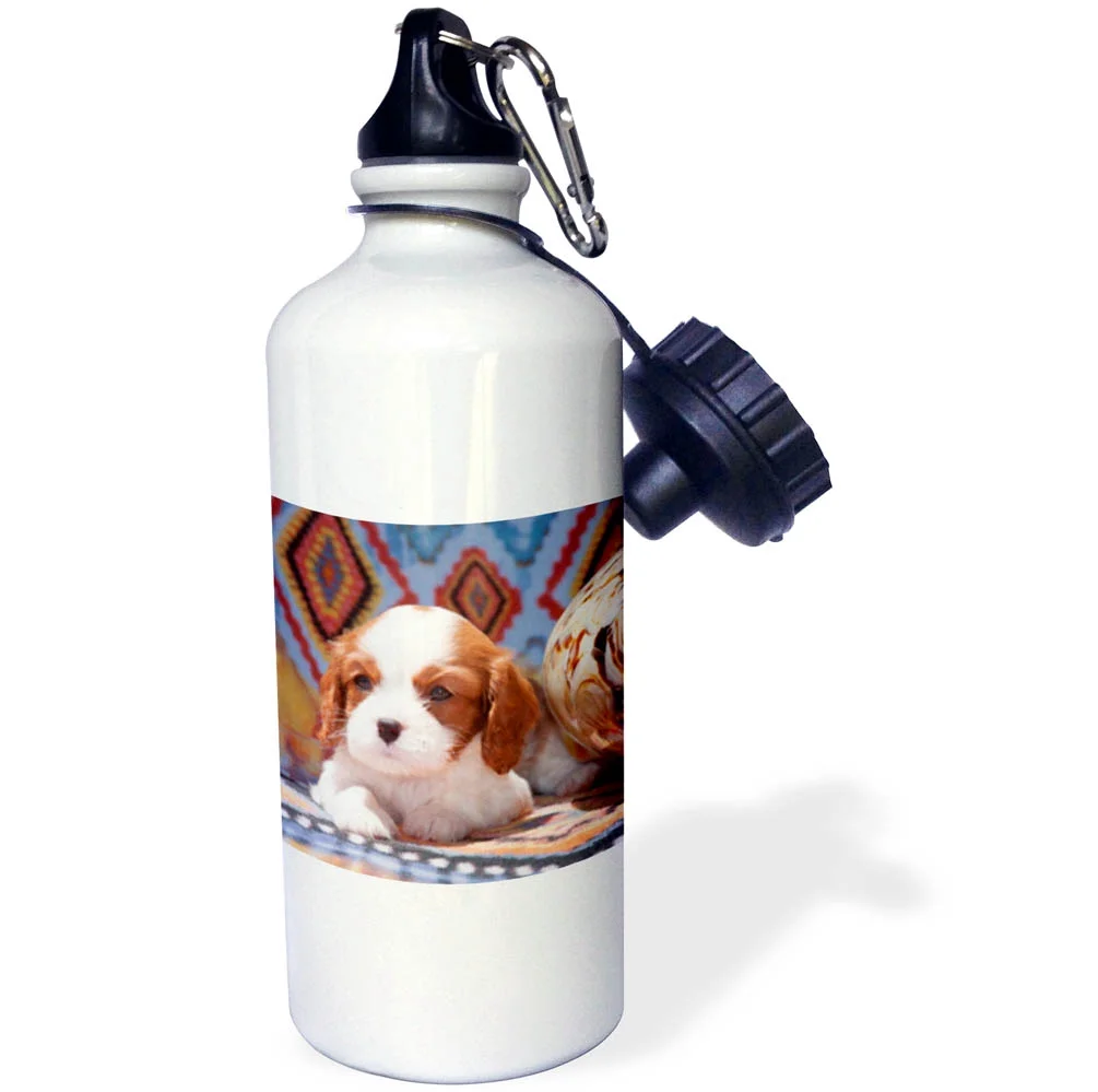 3dRose Cavalier Puppy lying next to glass vase, MR - Straw Water Bottle, 21-ounce