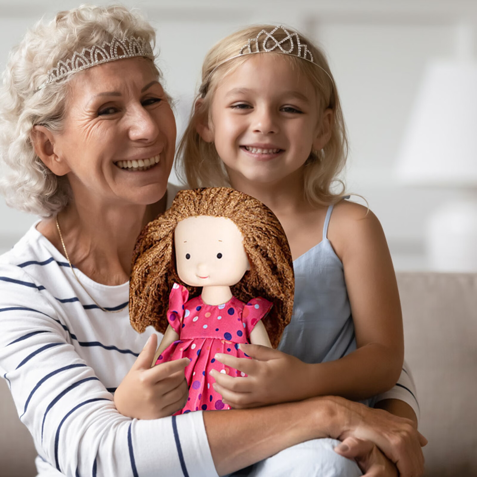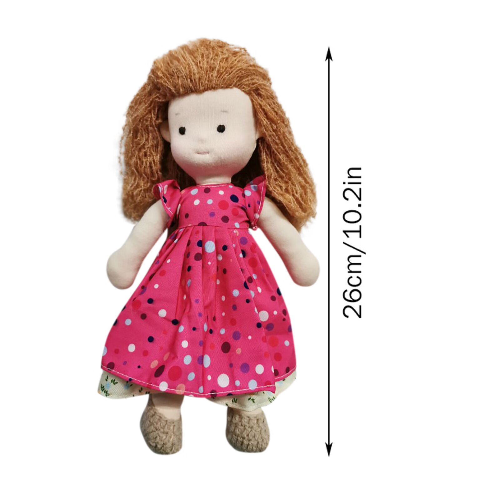 Toys Baby Girl Doll with Curly Hair Cute Handmade Rag Doll Plush Toy with Clothes Sleeping Partner Dolls Stuffed Animal Birthday Gift Toys for 1 Year Old Cotton Hot Pink