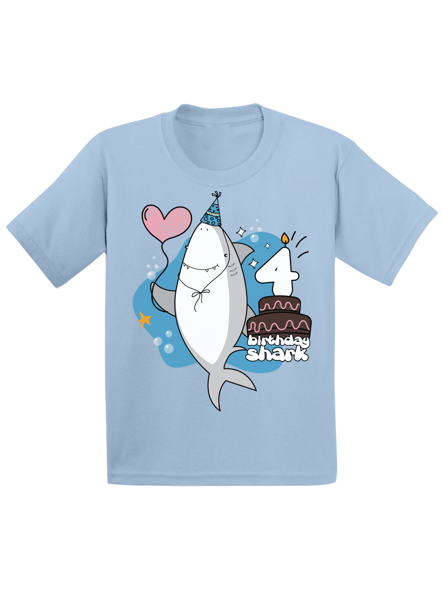 Awkward Styles Fourth Birthday Party I am Four T-shirt for Toddlers Shark Shirts for Boys Shark Lovers Shark Party Shark T Shirts for Girls Gifts for 4 Year Old Children Fourth B Day T-Shirt for Kids
