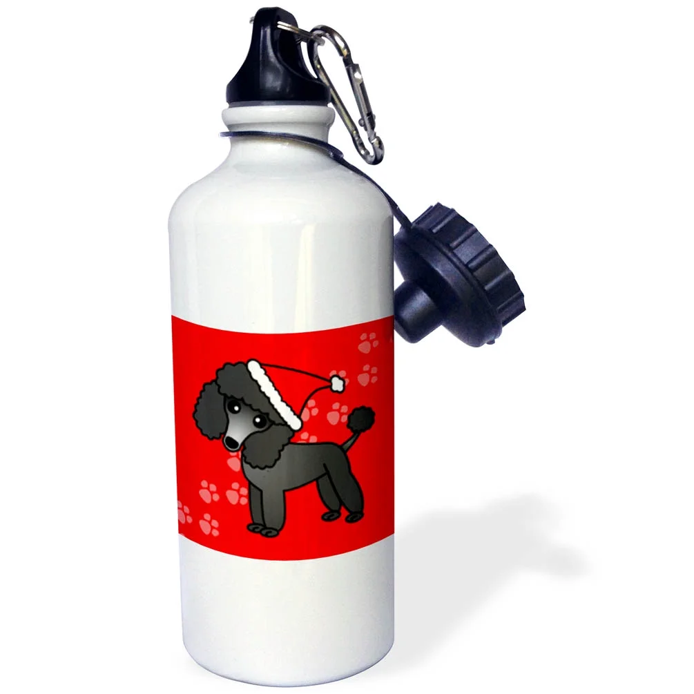 Cute Black Poodle Red Paw Background with Santa Hat 21 oz Sports Water Bottle wb-13765-1