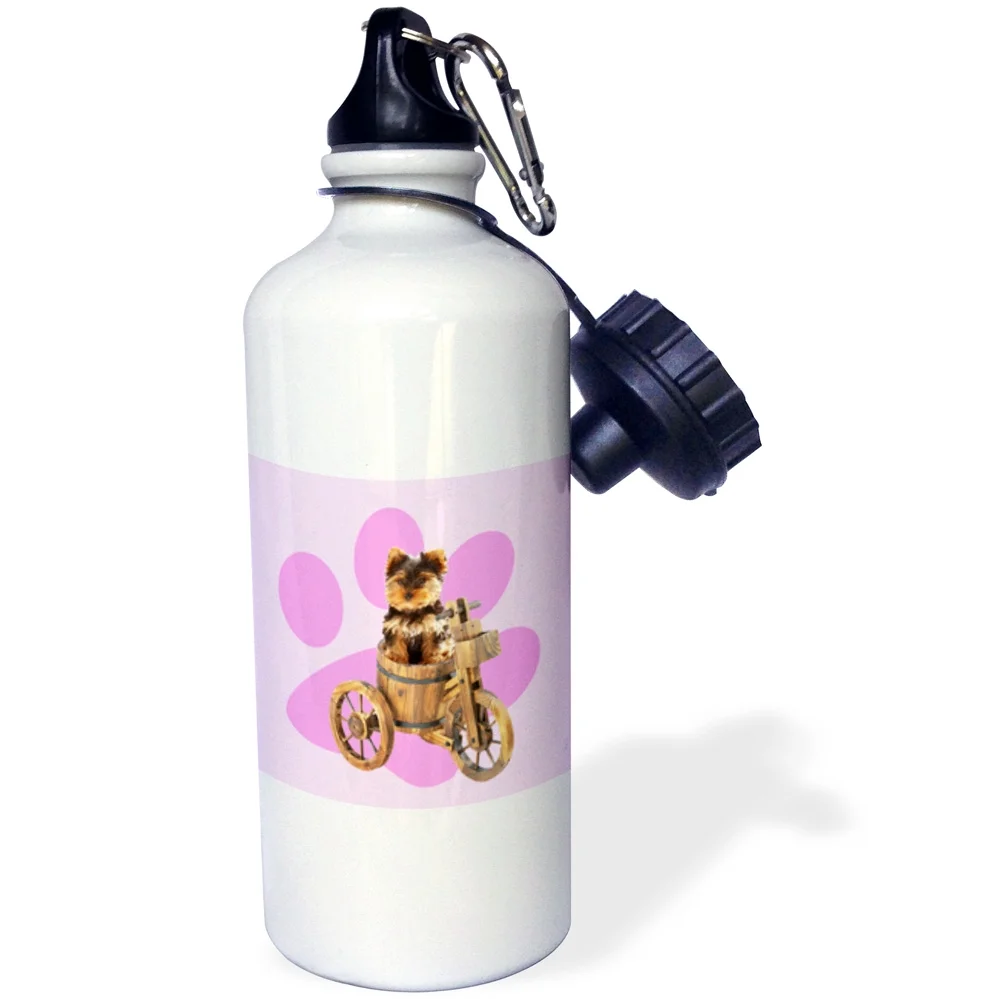 3dRose Teacup yorkie on bike. Pink paw. Puppy, animal. - Water Bottle, 21-ounce