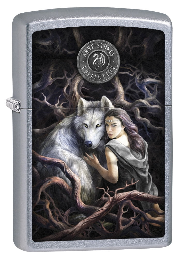 Zippo Lighter: Anne Stokes Soul Bond, Woman With Wolf - Street Chrome 79266