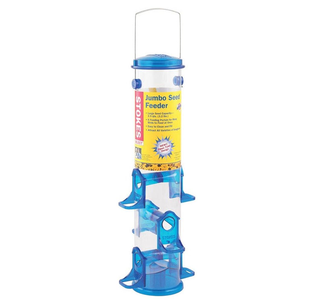 Stokes Select 38030 Seed Bird Feeder 2.5 qt Seed 6 Ports/Ways Polycarbonate Blue/Clear/Green