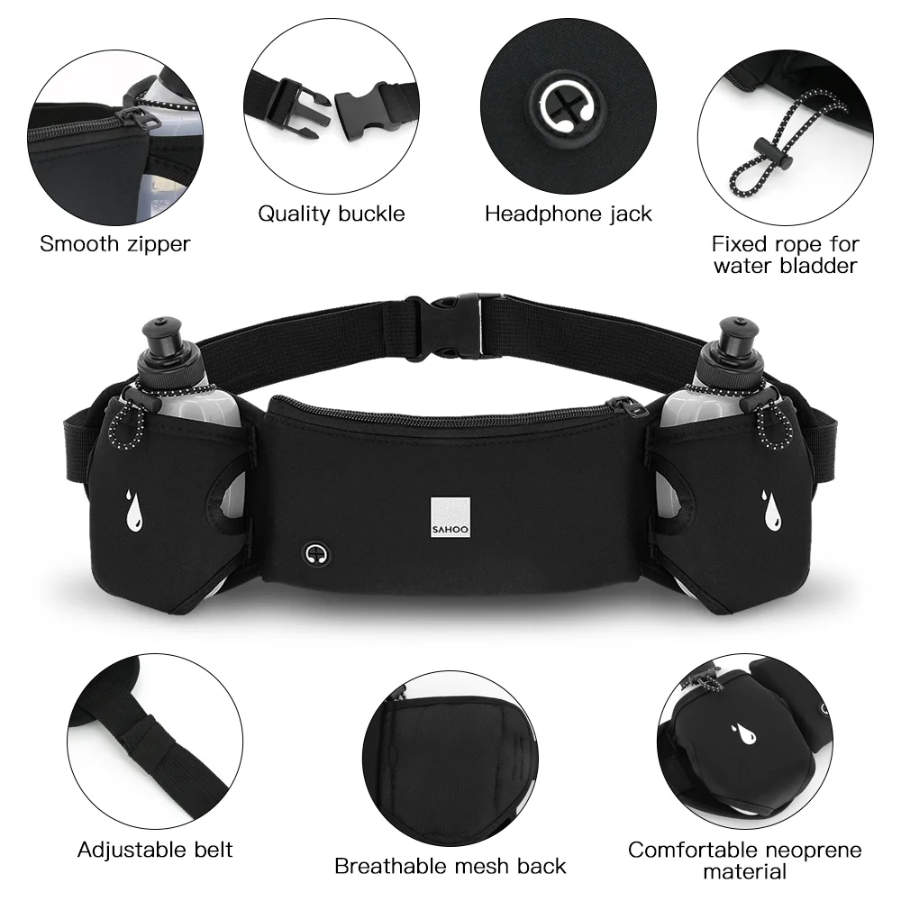 SAHOO Waist Pack,WaistWith Men Women Waist 2 Water Bottles With 2 Women Waist Pouch Bottles Men Women
