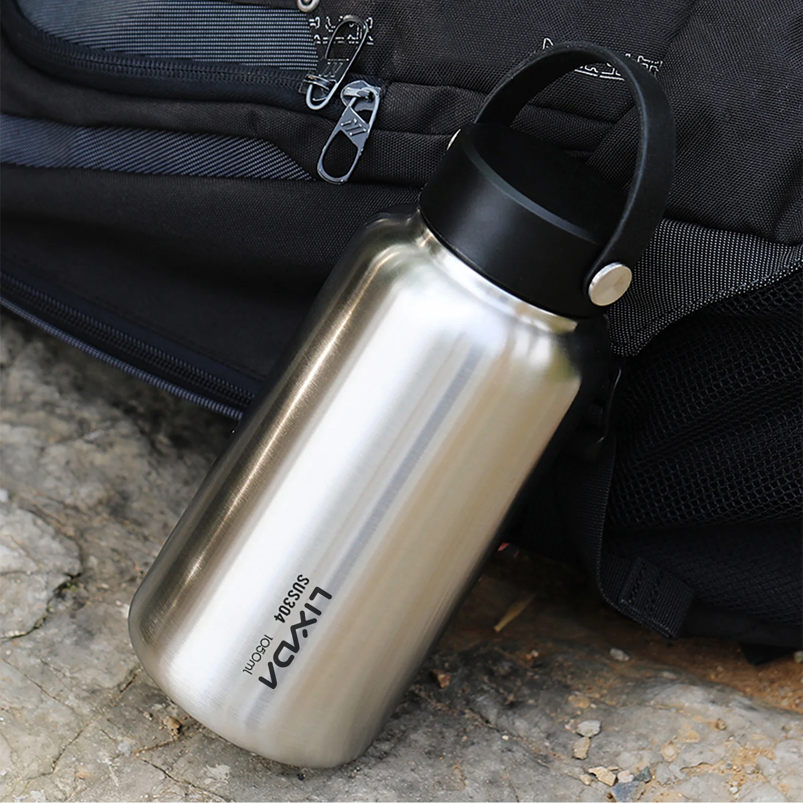 Lixada Leak Proof Stainless Steel Water Bottle Kettle, 1050ml Capacity, for Camping Hiking