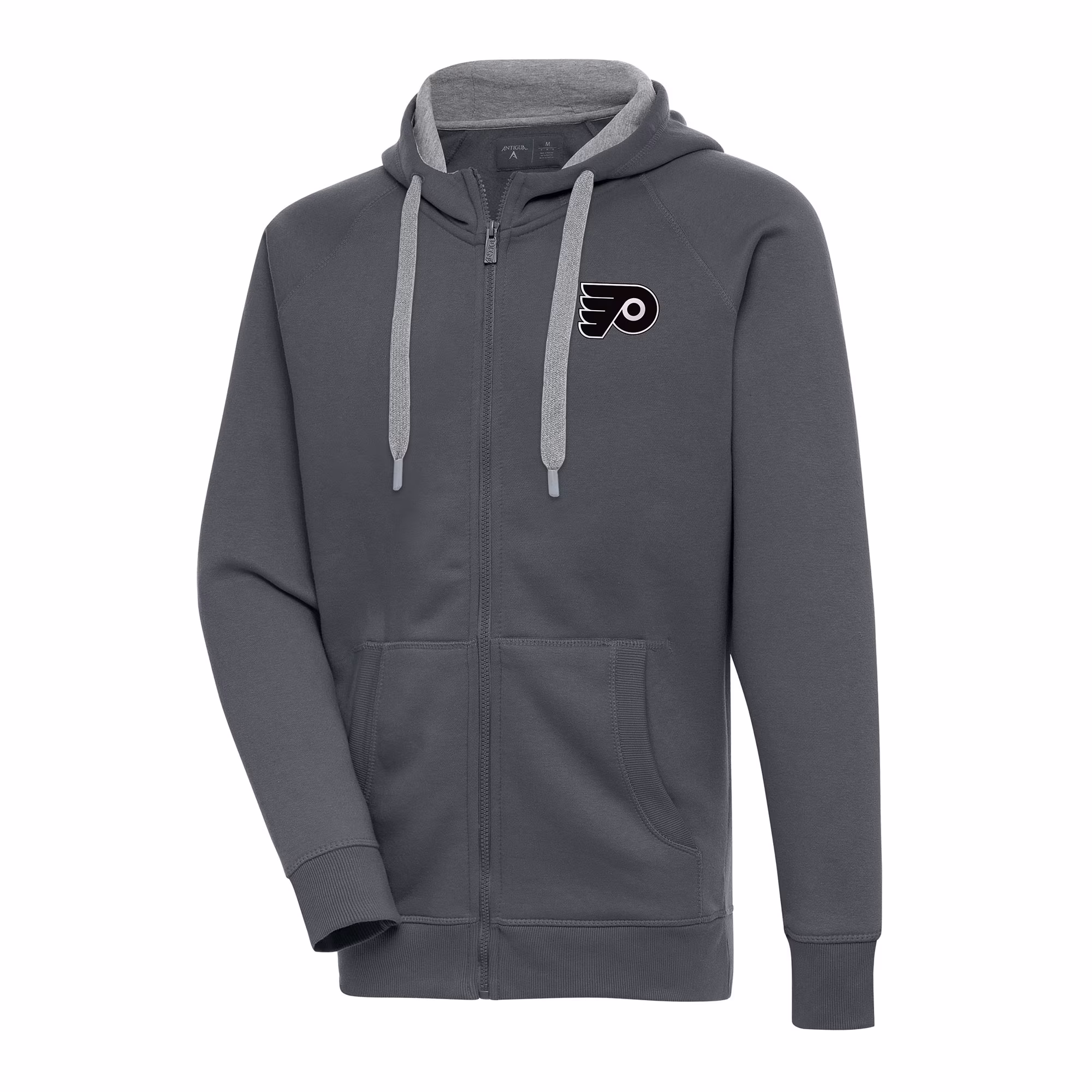 Men's Antigua Charcoal Philadelphia Flyers Metallic Logo Victory Full-Zip Hoodie