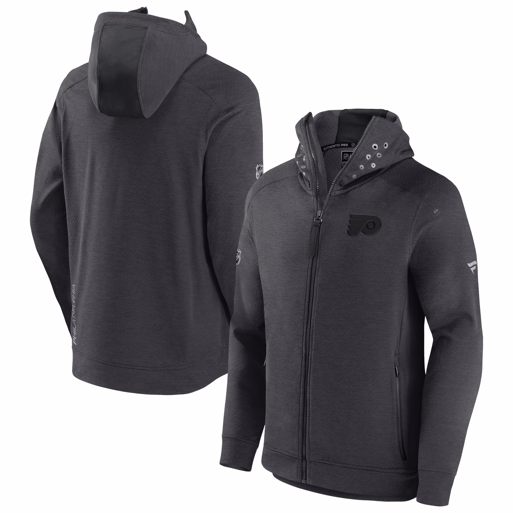Men's Fanatics Branded Heather Charcoal Philadelphia Flyers Authentic Pro Road Tech Full-Zip Hoodie Jacket