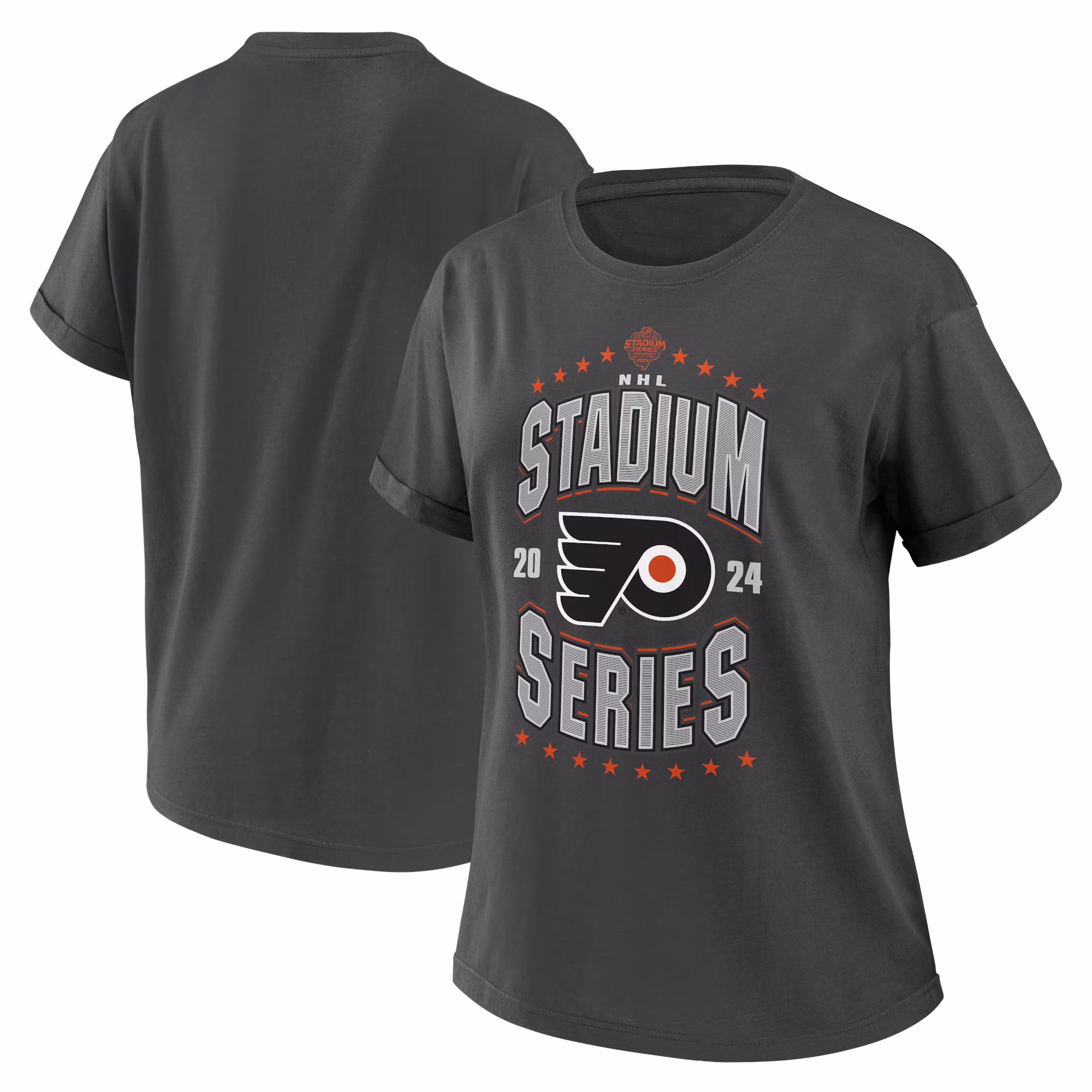 Women's WEAR by Erin Andrews Charcoal Philadelphia Flyers 2024 NHL Stadium Series Boyfriend T-Shirt