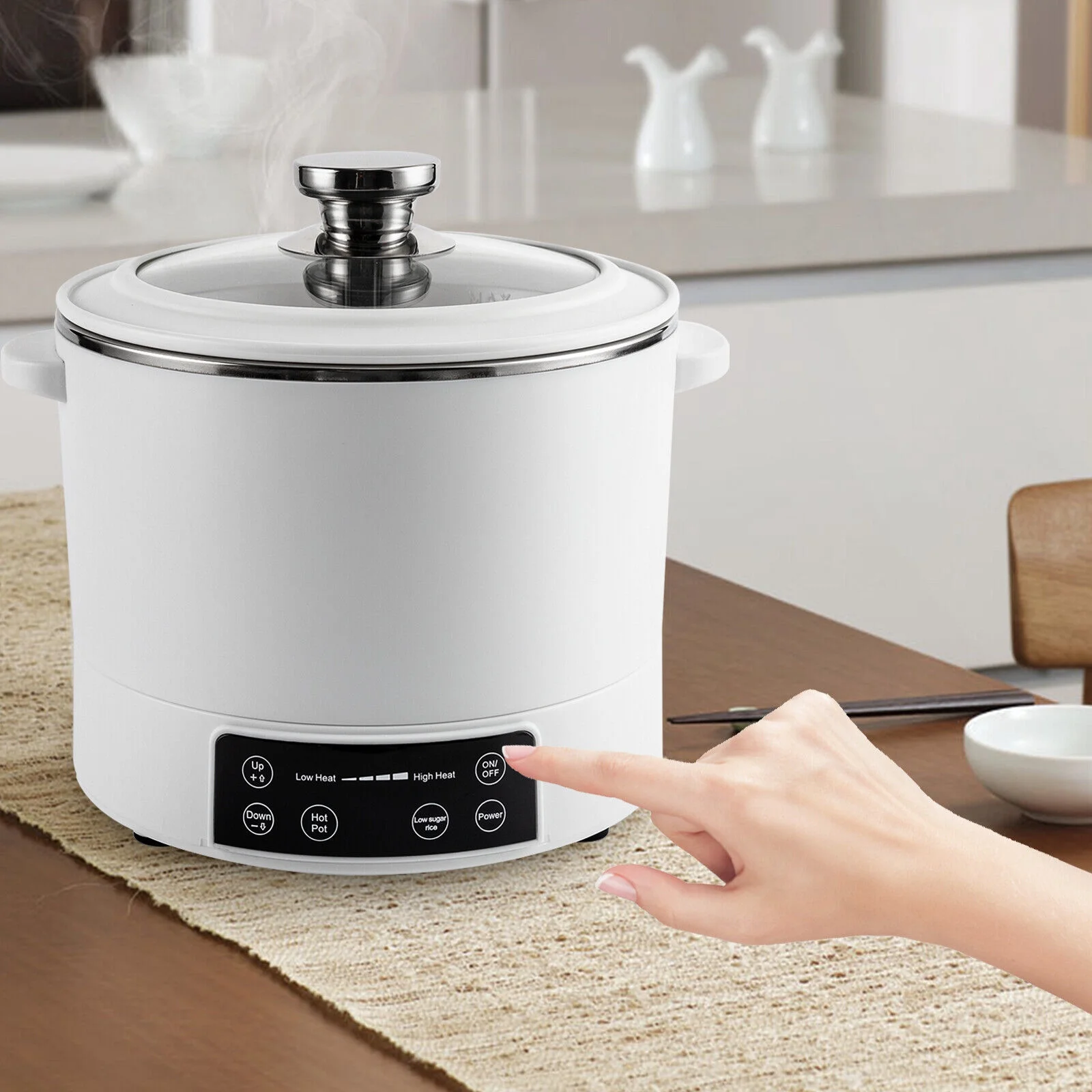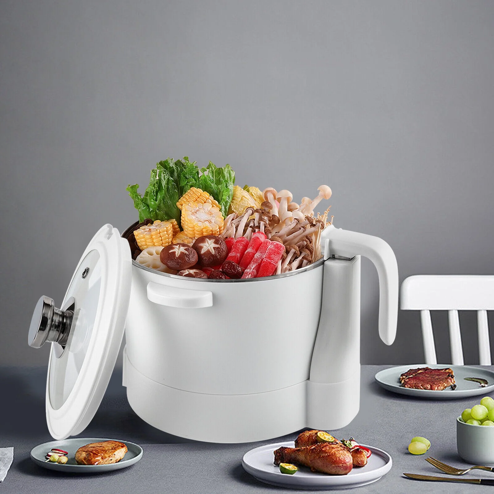 Electric Hot Pot with Steamer Smart Lifting 3L Electric Pot for Cooking Nonstick Coating