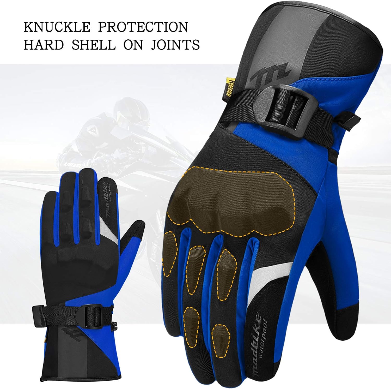 MADBIKE Motorcycle Motocross Waterproof Gloves for Winter Touchscreen Gauntlet (Dark Blue, XL)