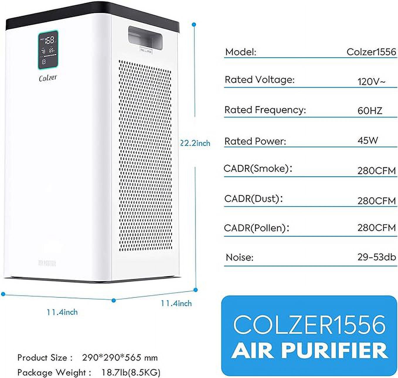Open Box COLZER Air Purifier True HEPA Air Filter 3-Stage 900 Sq Ft COLZER1556 - White