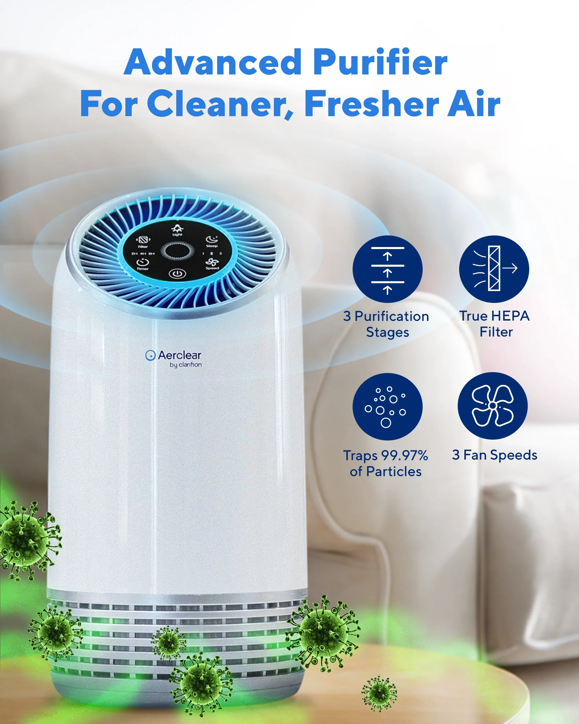 Clarifion AerClear Air Purifier, True HEPA Filter 3-Stage Filtration Low Noise