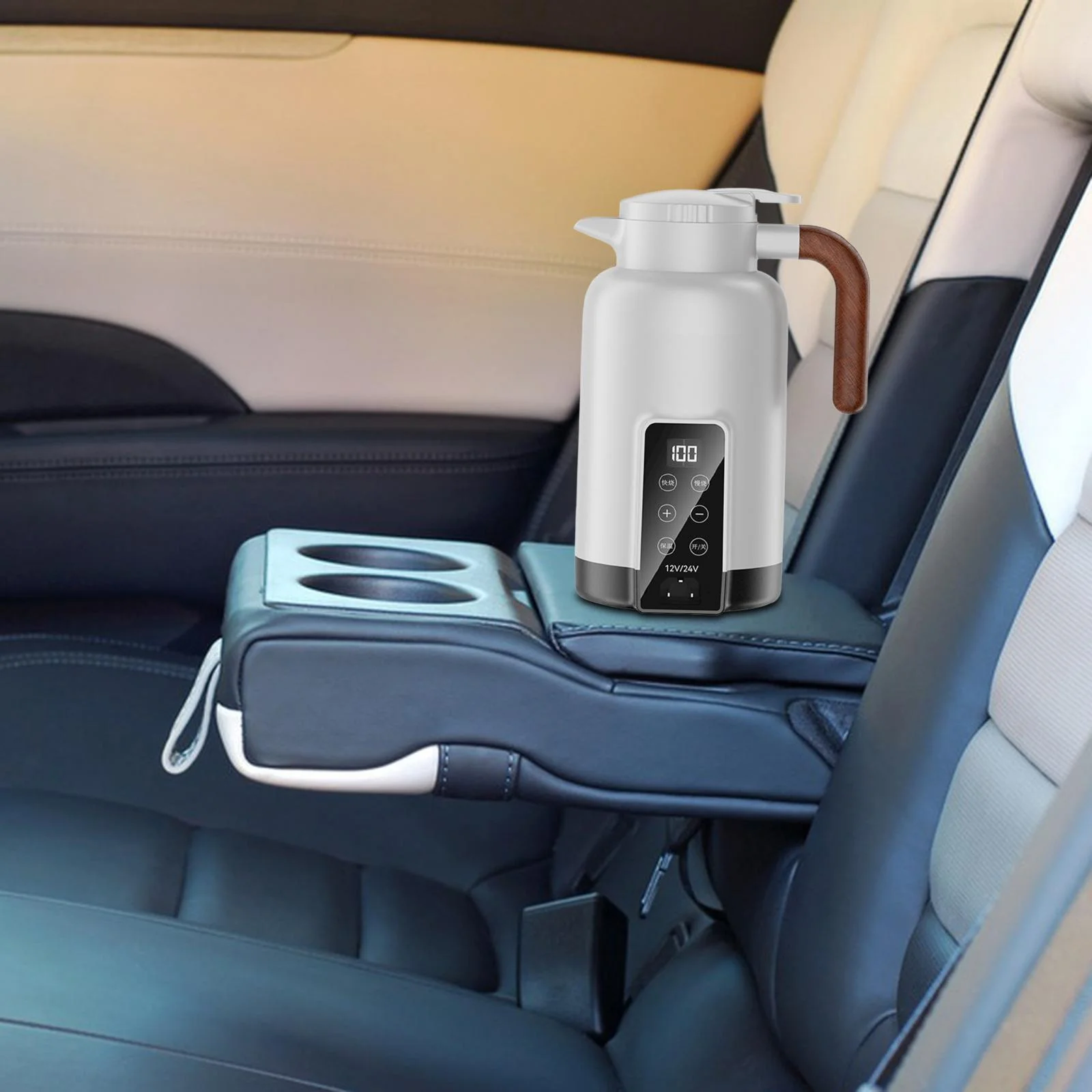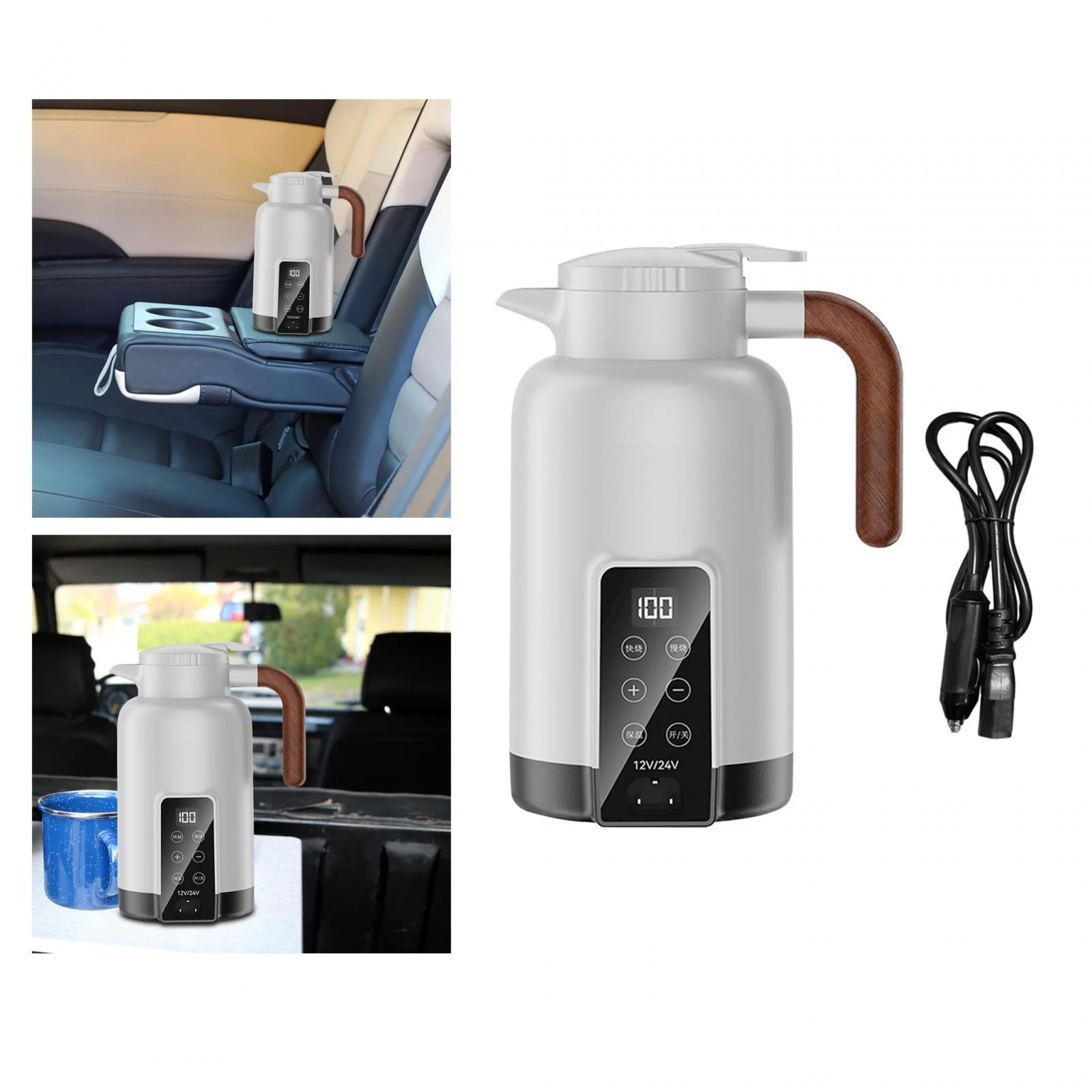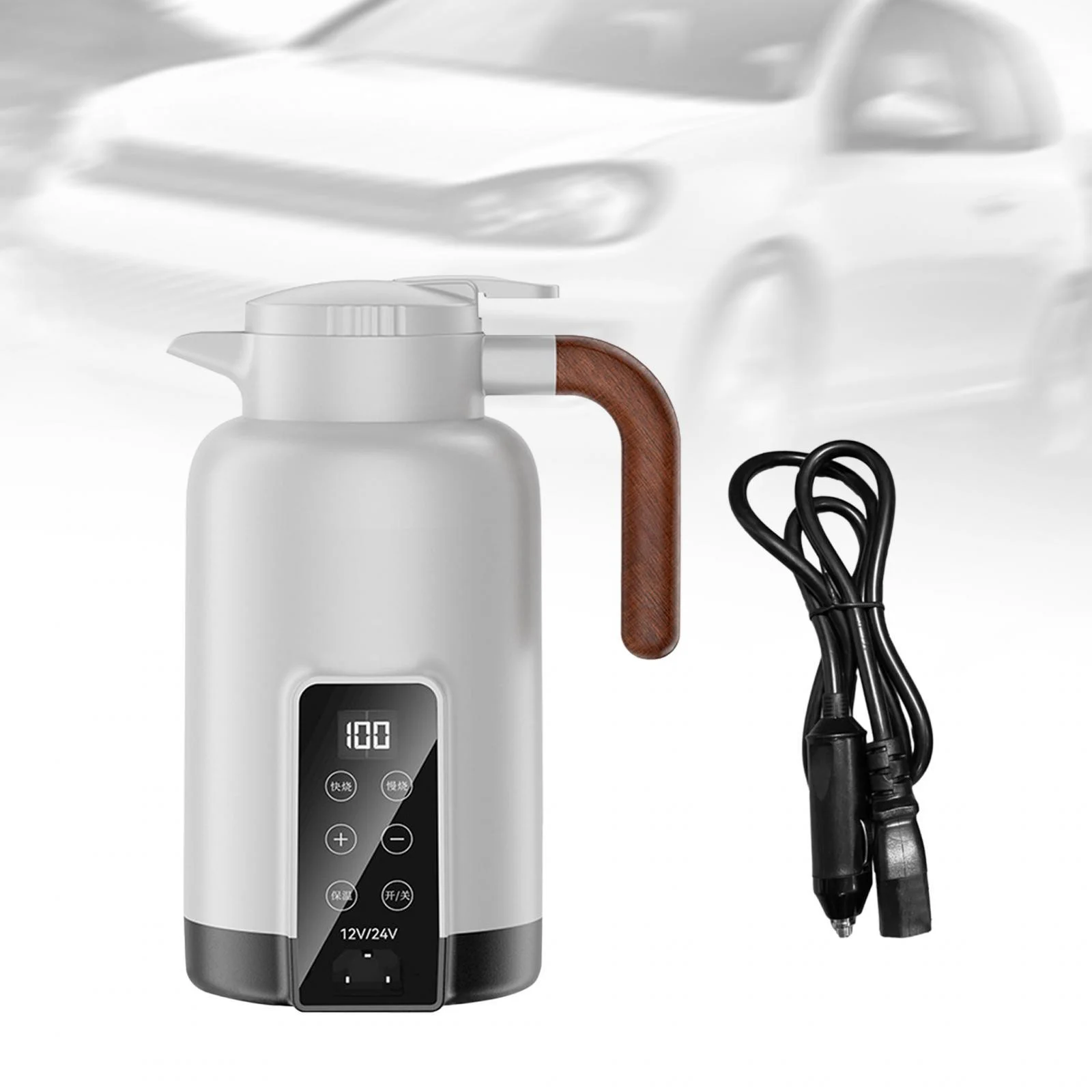 perfk Car Heating Cup 1.3L Auto Heating Kettle for Tea Heating Water Beverage White